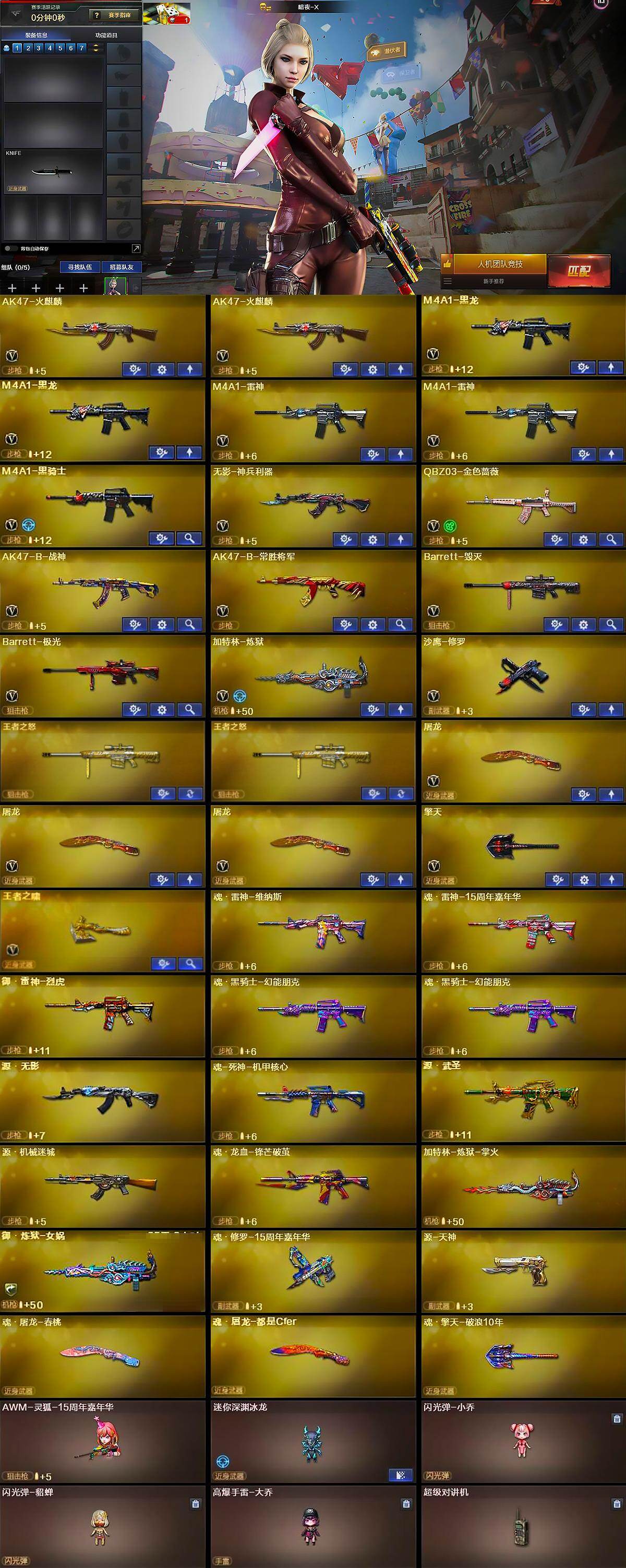 【皮肤】:雷神-暗月,火麒麟-心动糖果,M4A1-千变-孔明皮肤,黑龙-能量核心,AK47-B-常胜将军-刘备,AK47-B-常胜将军-孙权