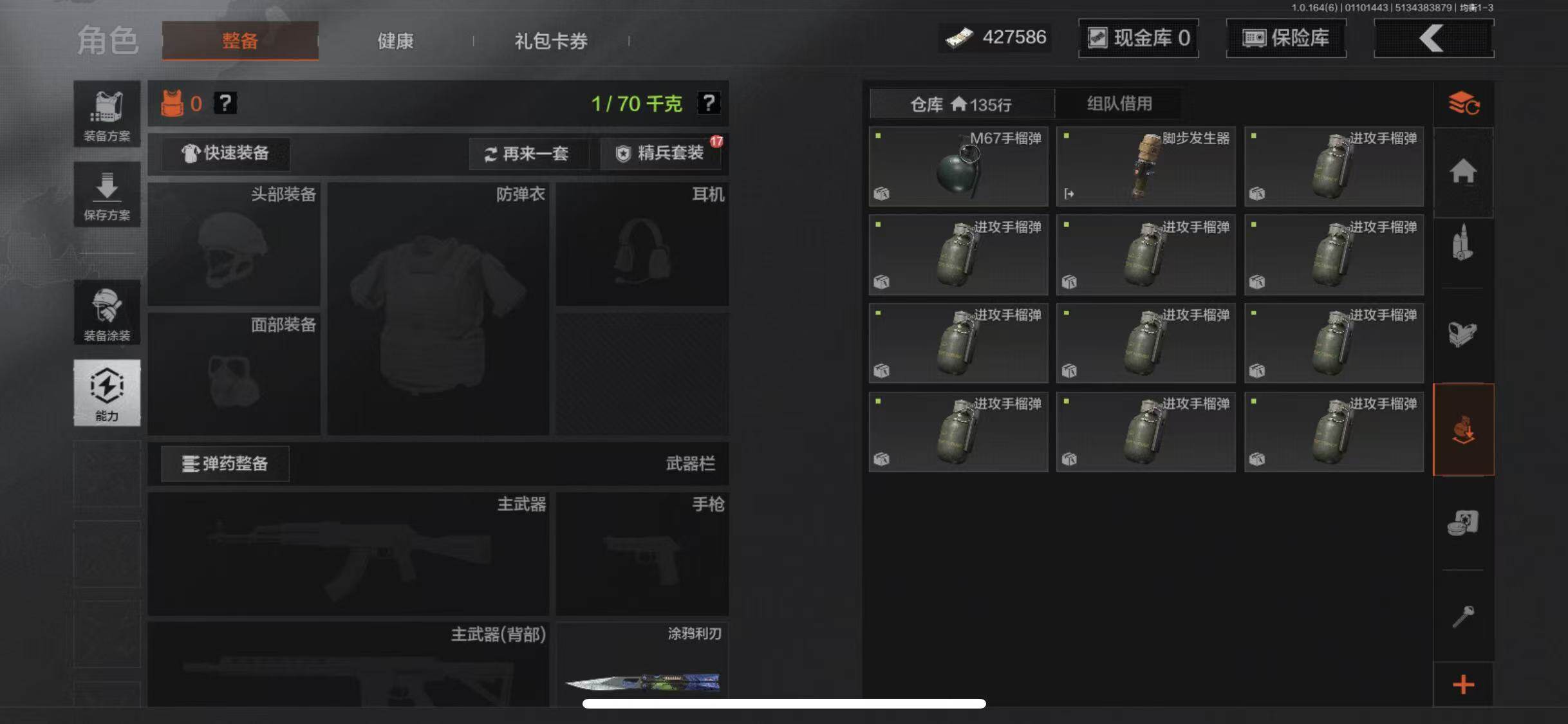 仓库价值(百万):2.5/柯恩币:427586/涂鸦利刃/来战开山刀/工兵铲