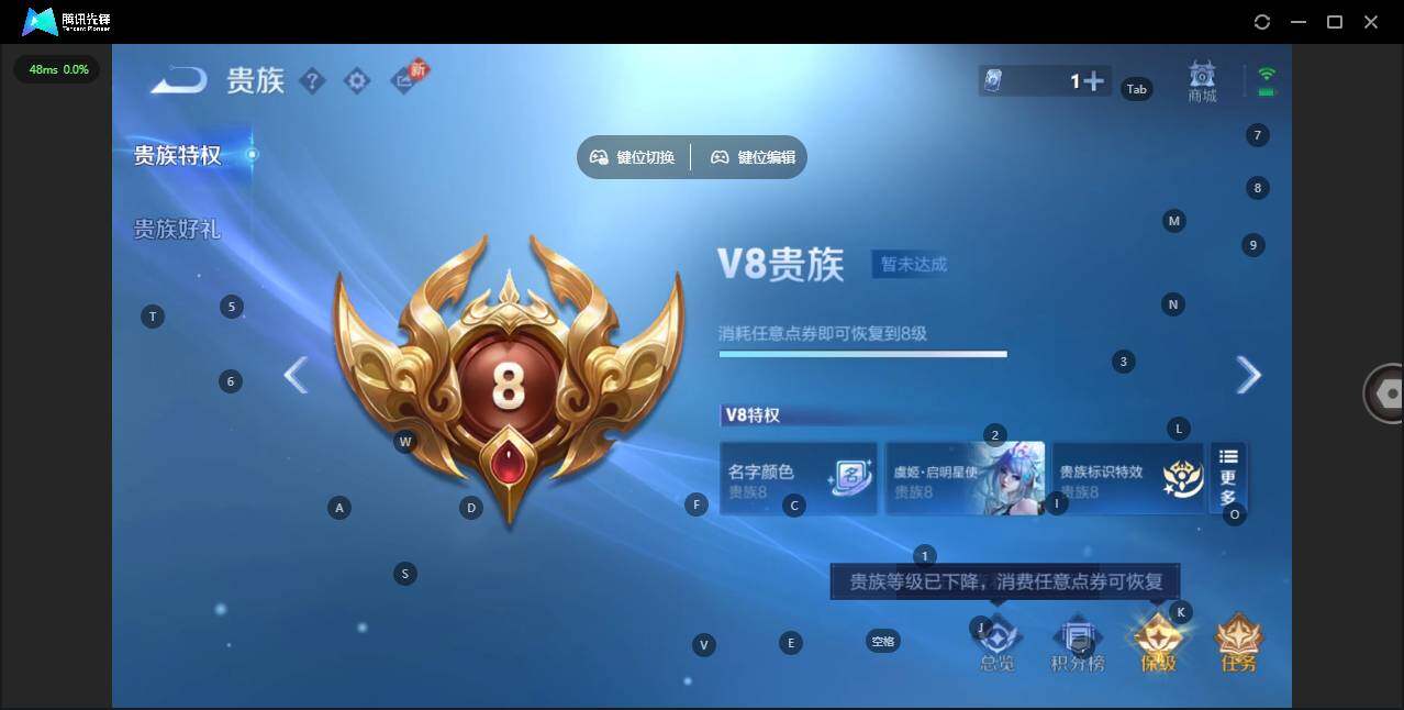 【金标铠】贵族等级: V8 英雄数: 128 皮肤数: 289 荣耀水晶: 弑
