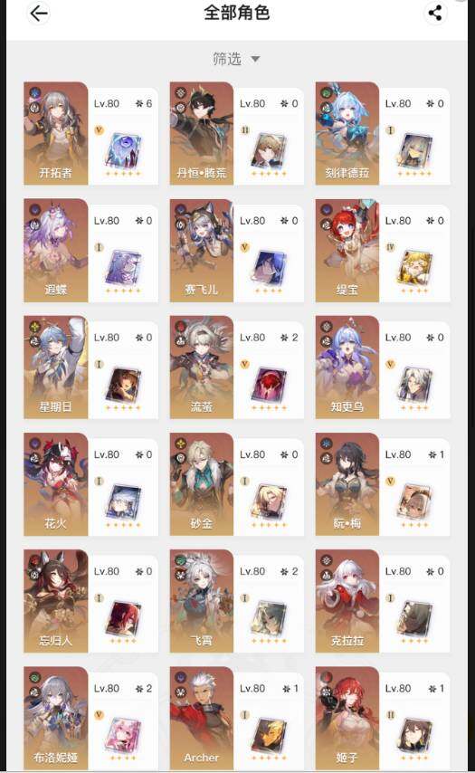 【BHC59】等级:70/总黄数:36/女主/角色黄数:21/2命流萤/2命飞霄/0命丹恒•腾荒/0命刻律德菈/0命遐蝶/0命赛飞儿/0命缇宝/0命星期日/0命知更鸟/0命砂金/0命忘归人