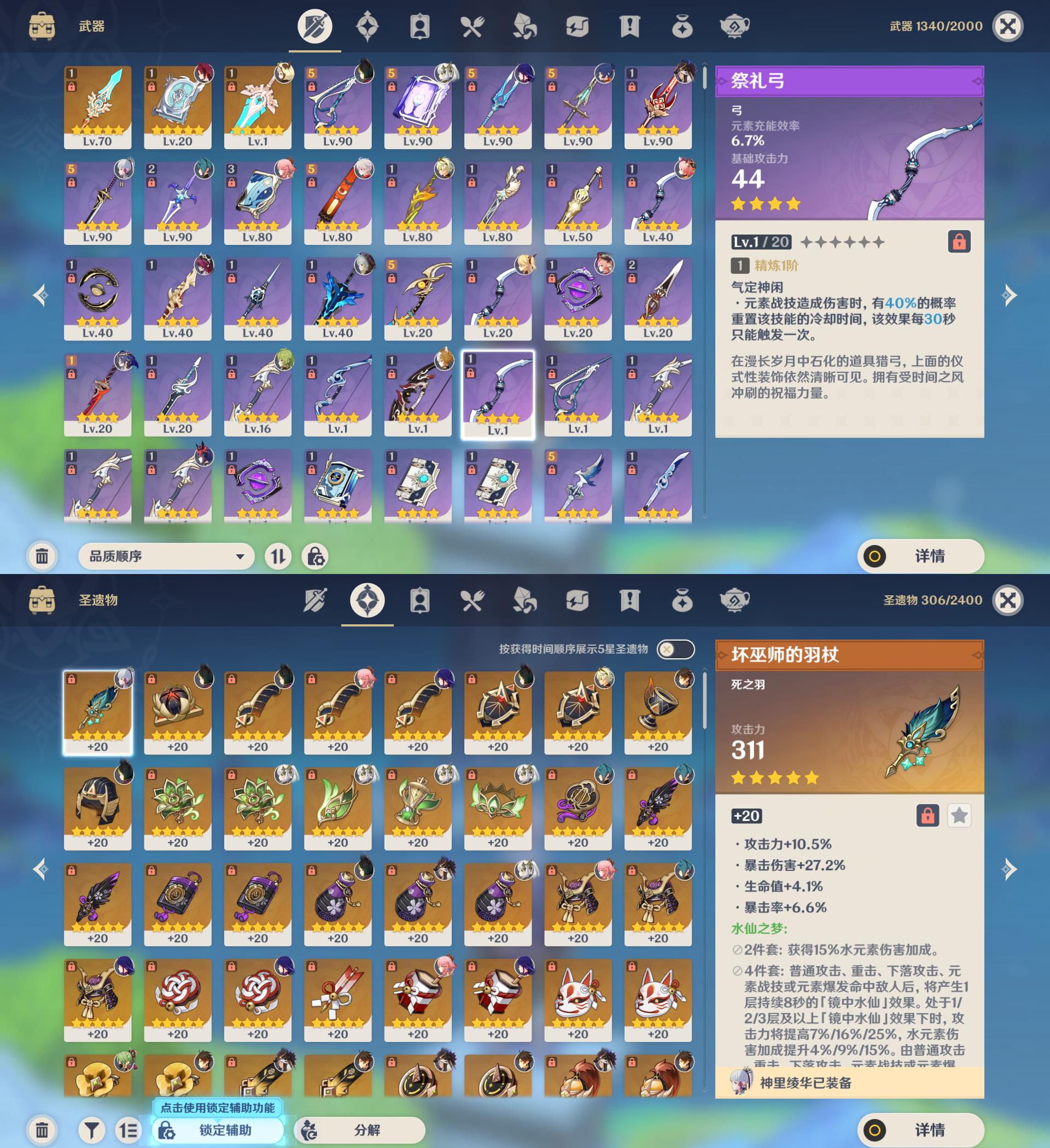 【YSYT471】56级/19黄/女主/13个五星角色/3个五星武器/神里绫华/枫原万叶/钟离/赛诺/雷电将军/纳西妲/1命提纳里/八重神子/迪卢克/1命琴/迪希雅/七七/天空之脊/四风原典/天空之傲
