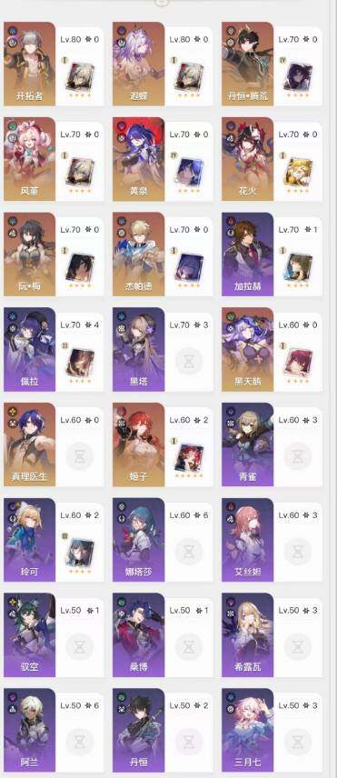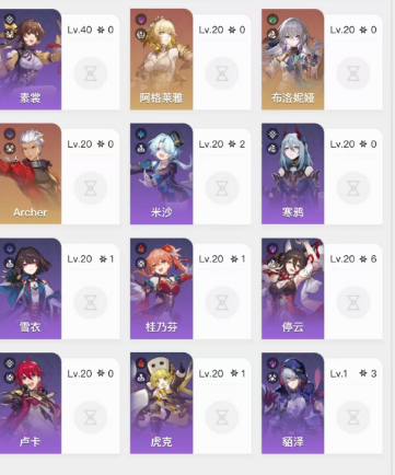 16/女主/角色黄数:13/0命遐蝶/0命风堇