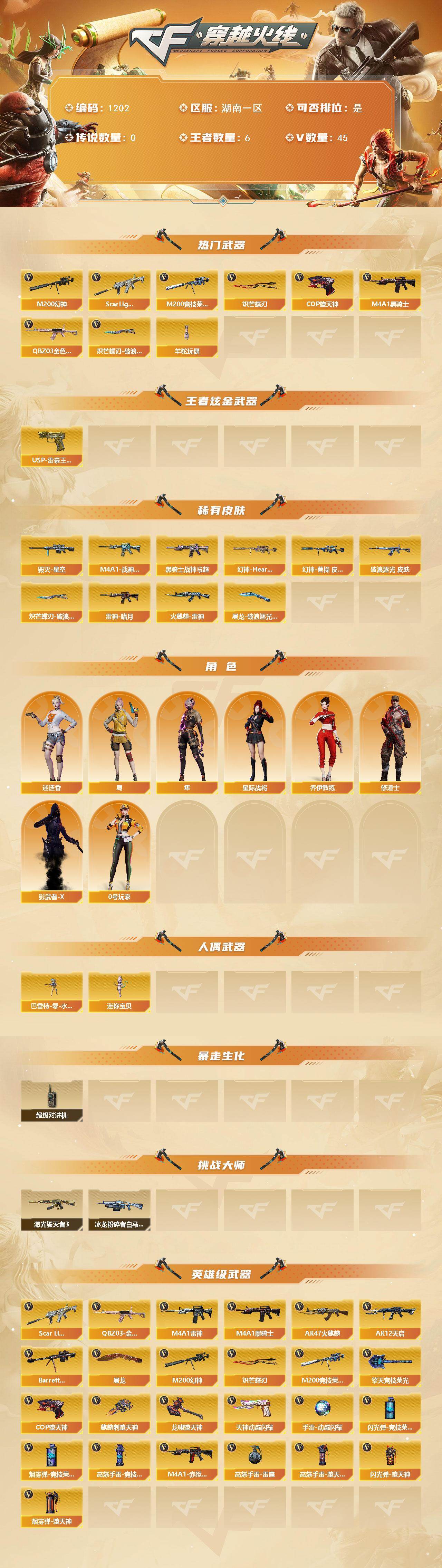 湖南一区-45V-6王者-0炫金【热门武器】:QBZ03-金色蔷薇,Scar