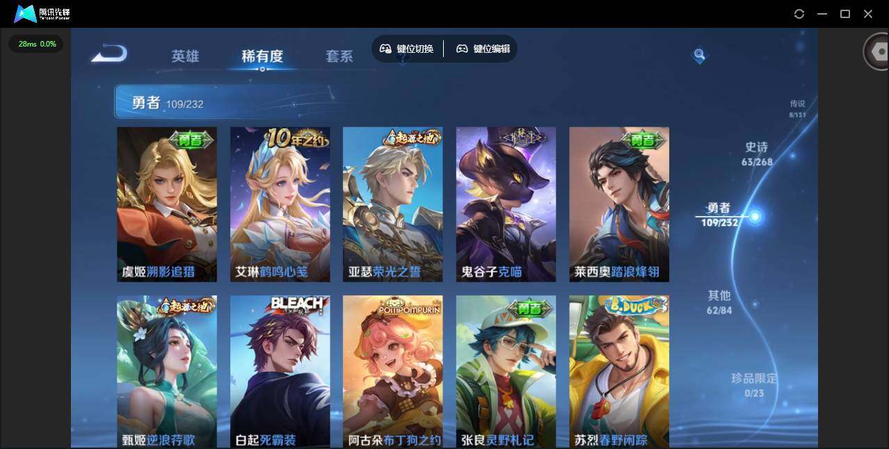 贵族等级: V7 英雄数: 124 皮肤数: 243 荣耀水晶: 九霄神辉 星