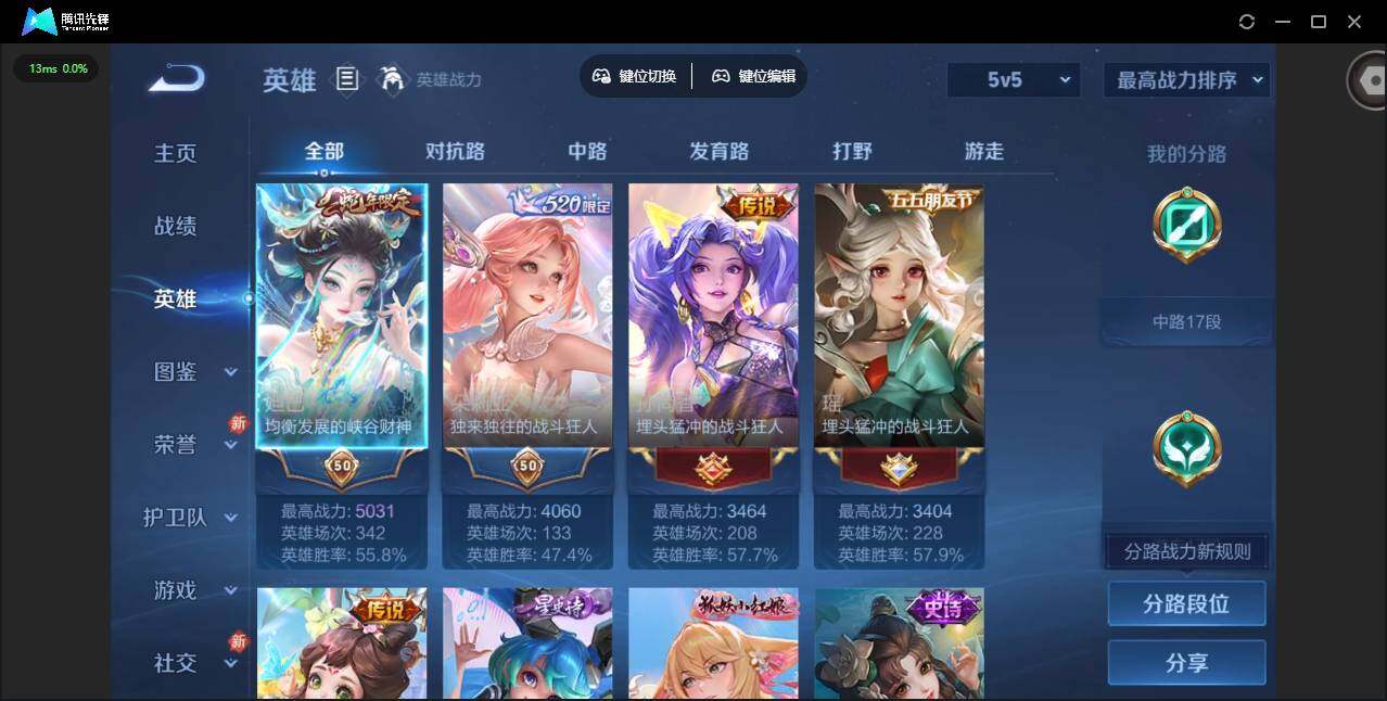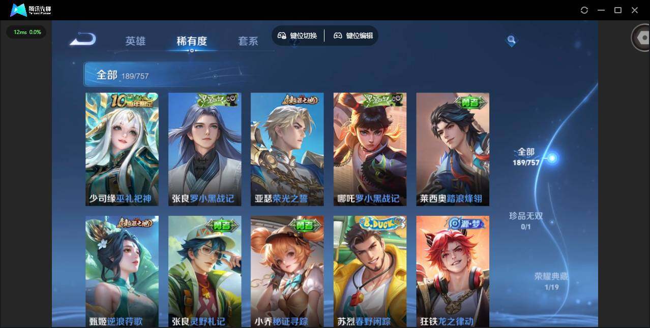 实名: 可修改 贵族等级: V8 英雄数: 125 皮肤数: 189 荣耀水晶
