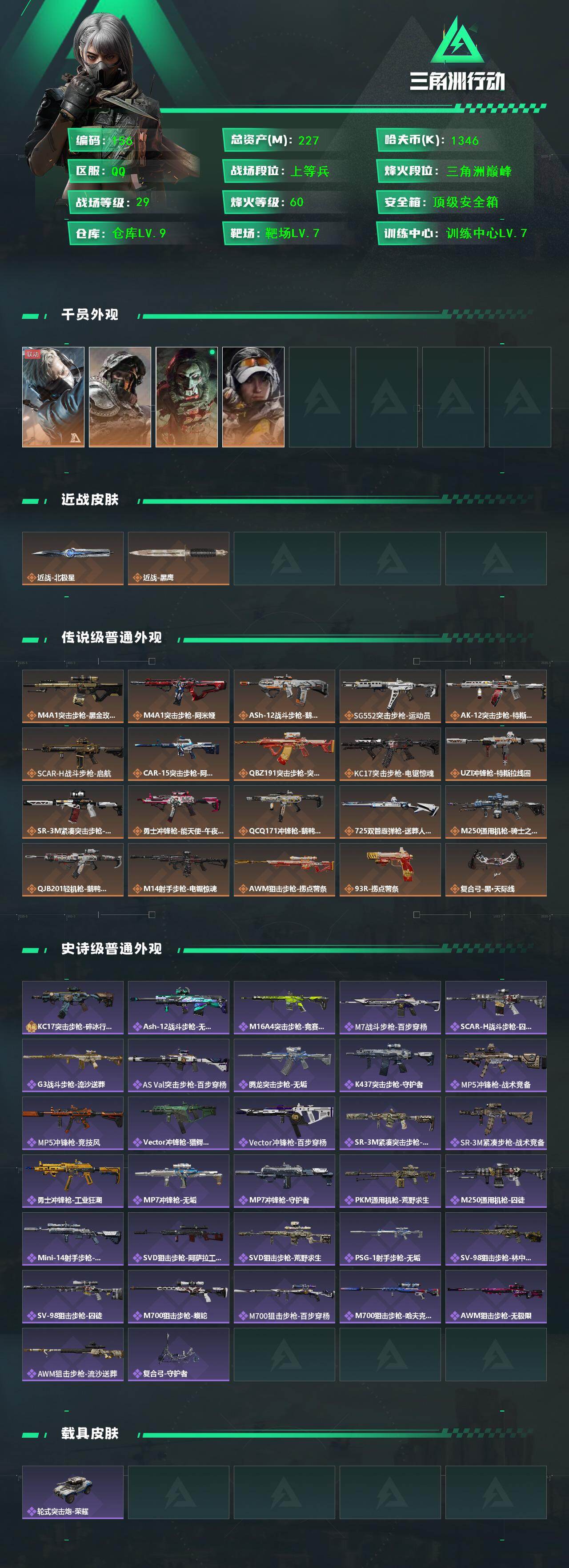 227m总资产-1346k哈伏币-60烽火等级-三角洲巅峰-29战场等级-上等兵 YY1765
