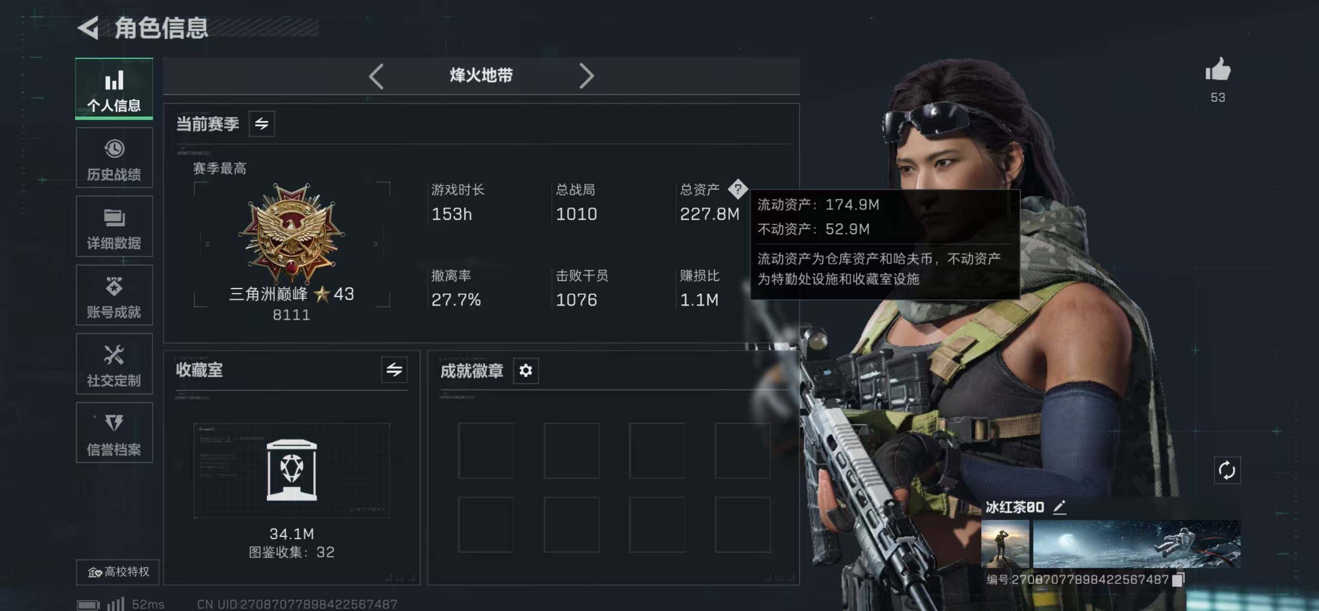 227m总资产-1346k哈伏币-60烽火等级-三角洲巅峰-29战场等级-上等