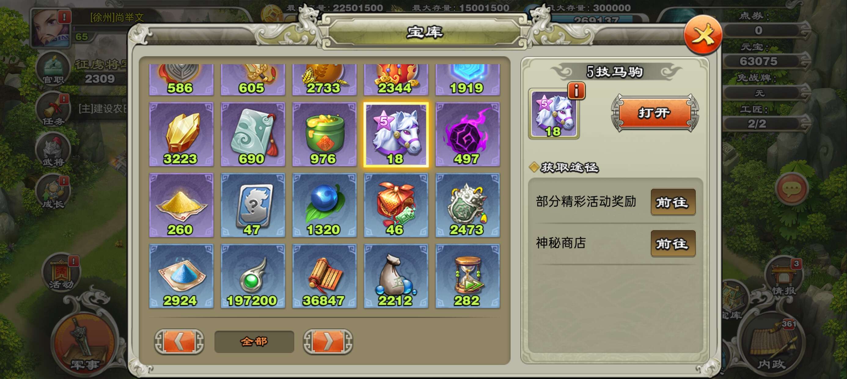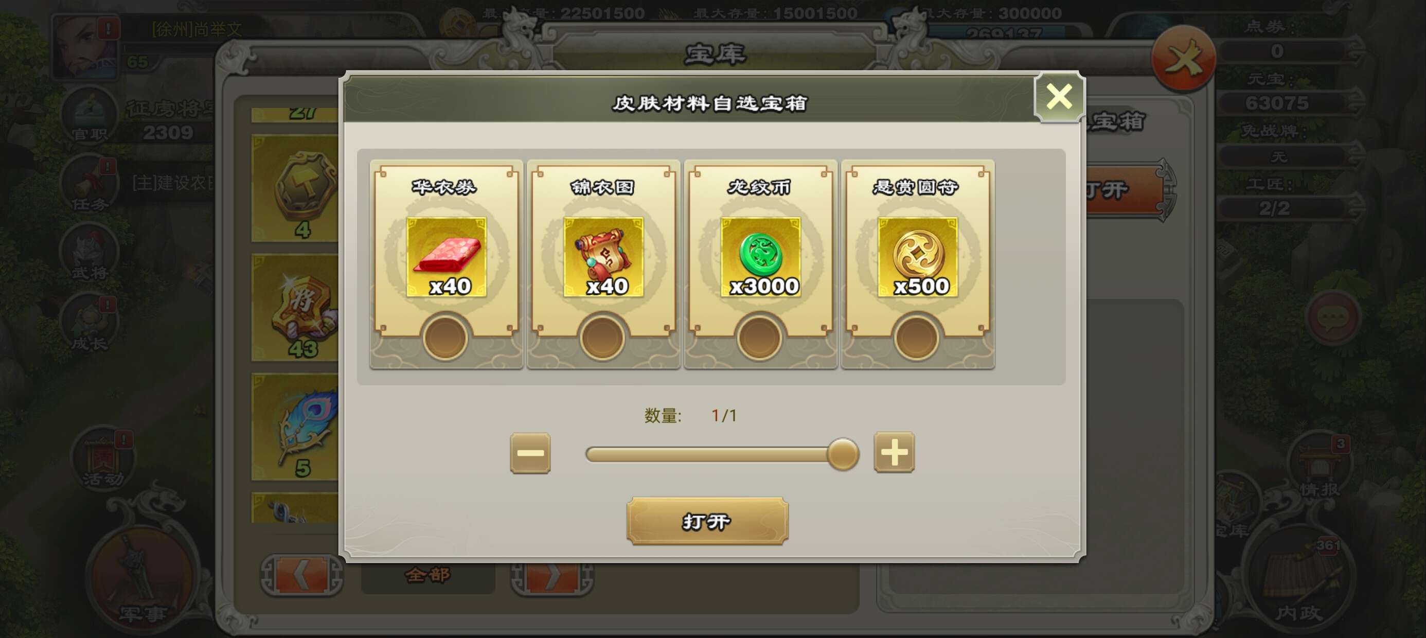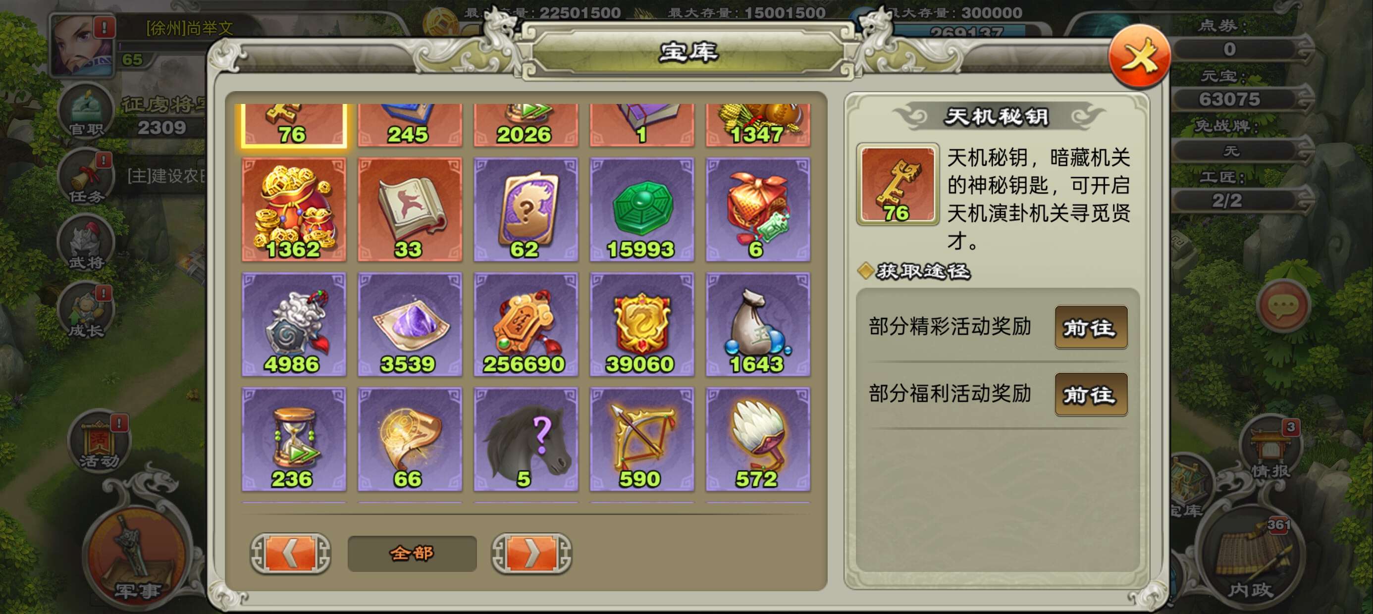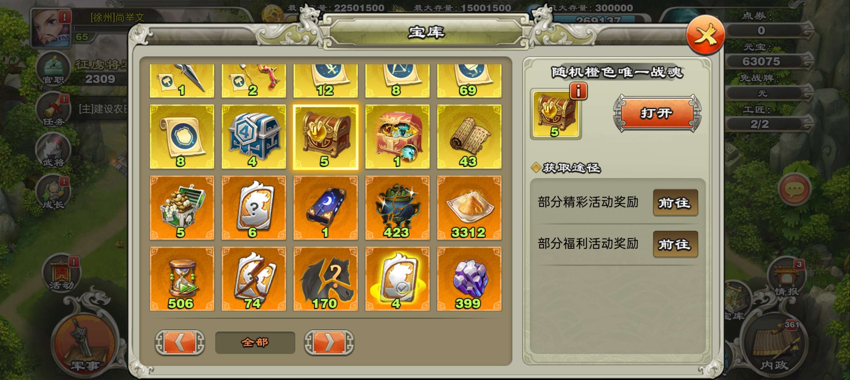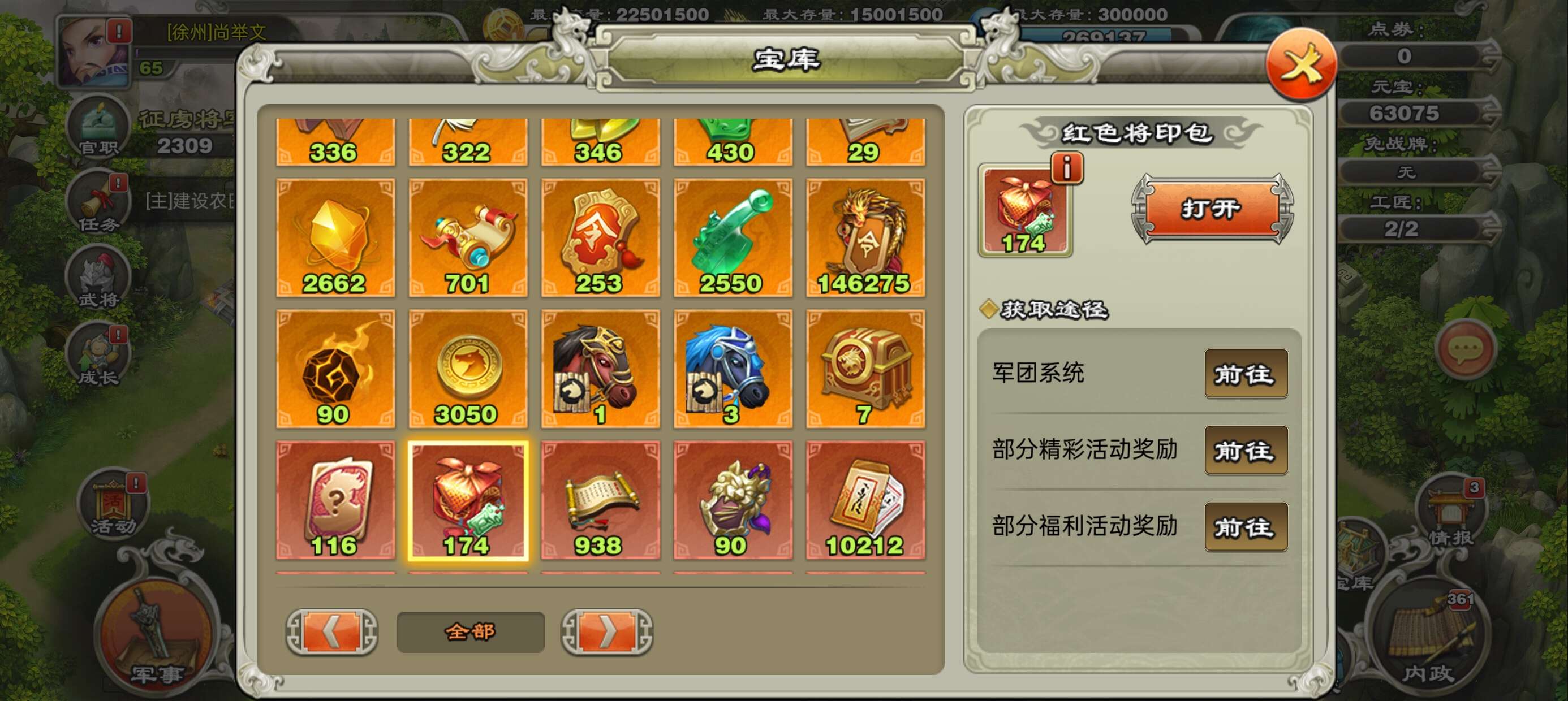 一张777武将自选卡,威望,军团,三国令商店币都比较多自行兑换所需材料,金宝魂玉将魂战魂神兵等材料多