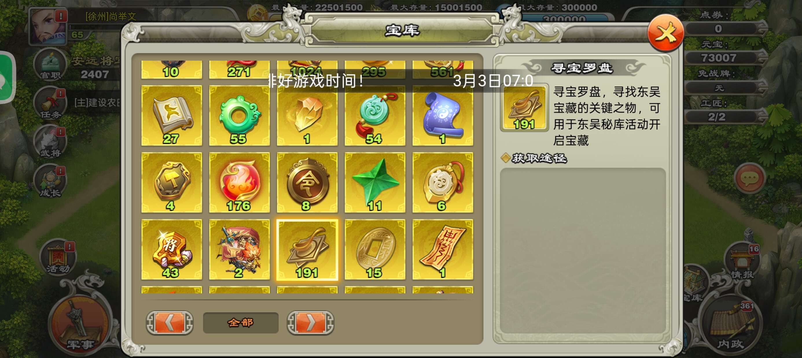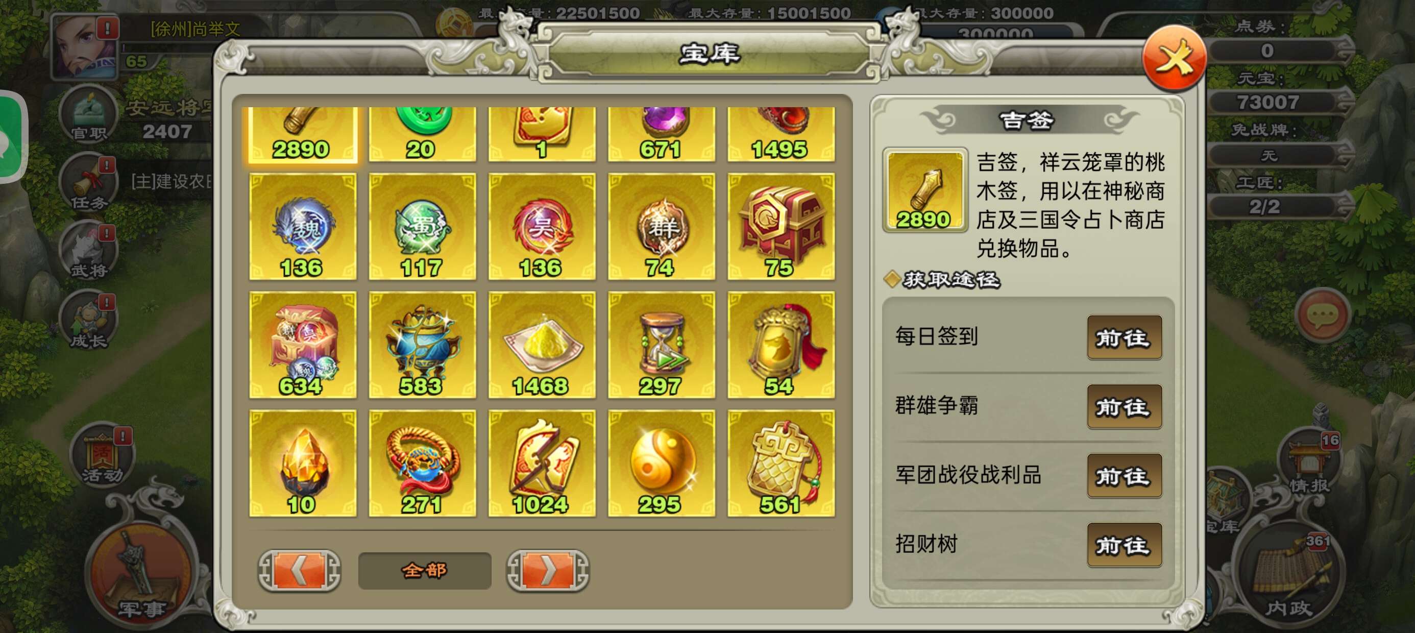 2900吉签7.3万元宝190罗盘13本65级压级资源号