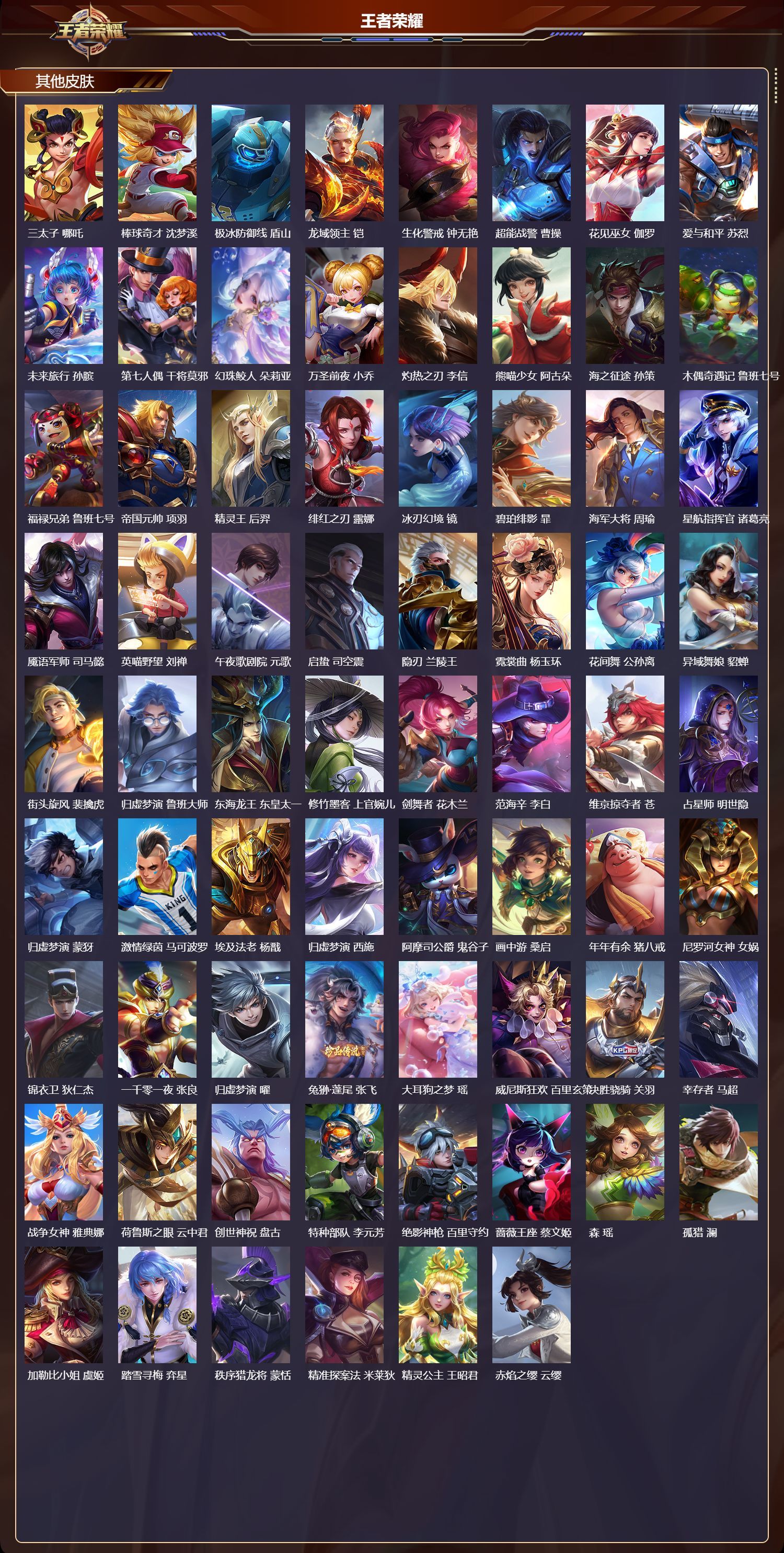 安卓QQ/无双王者/422皮肤/126英雄/3典藏/0珍品无双/5无双/2珍品传说/44传说/137