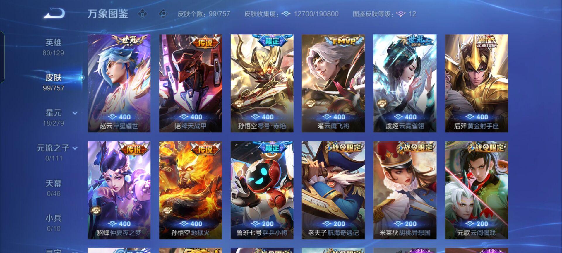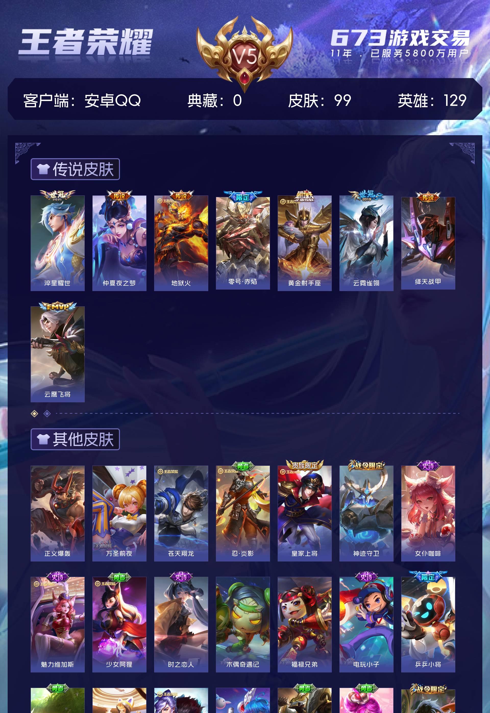 V5 皮肤99 英雄129 秩序白银 传说8 其他皮肤96
