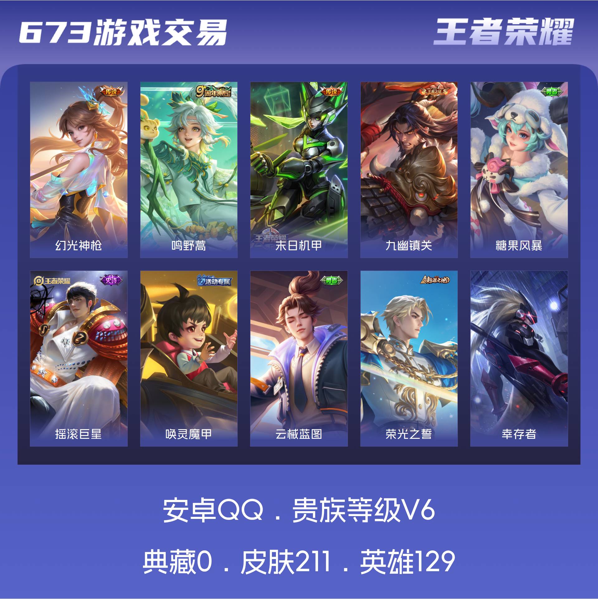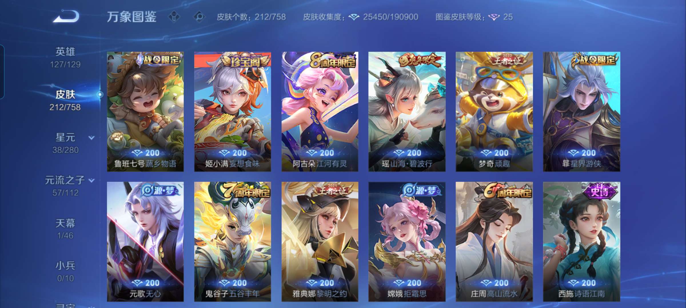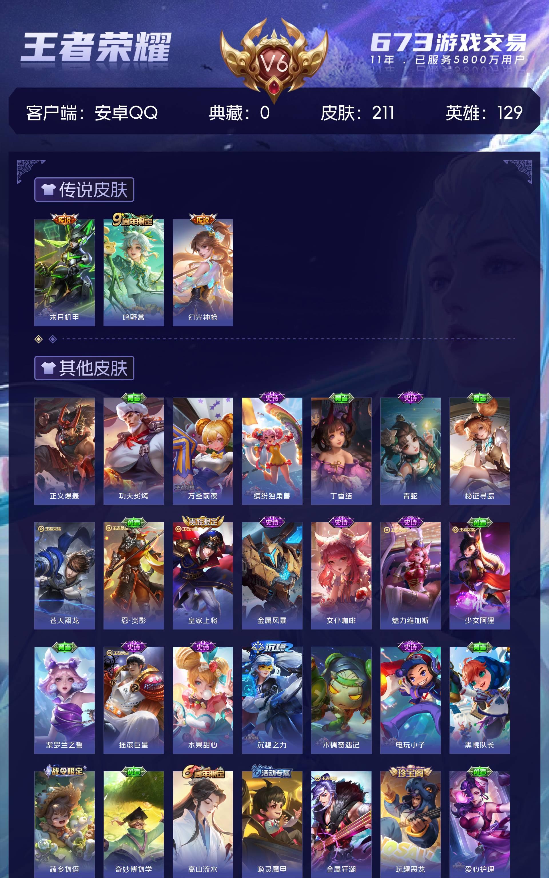 V6 皮肤211 英雄129 永恒钻石 星传说1 传说3 其他皮肤214