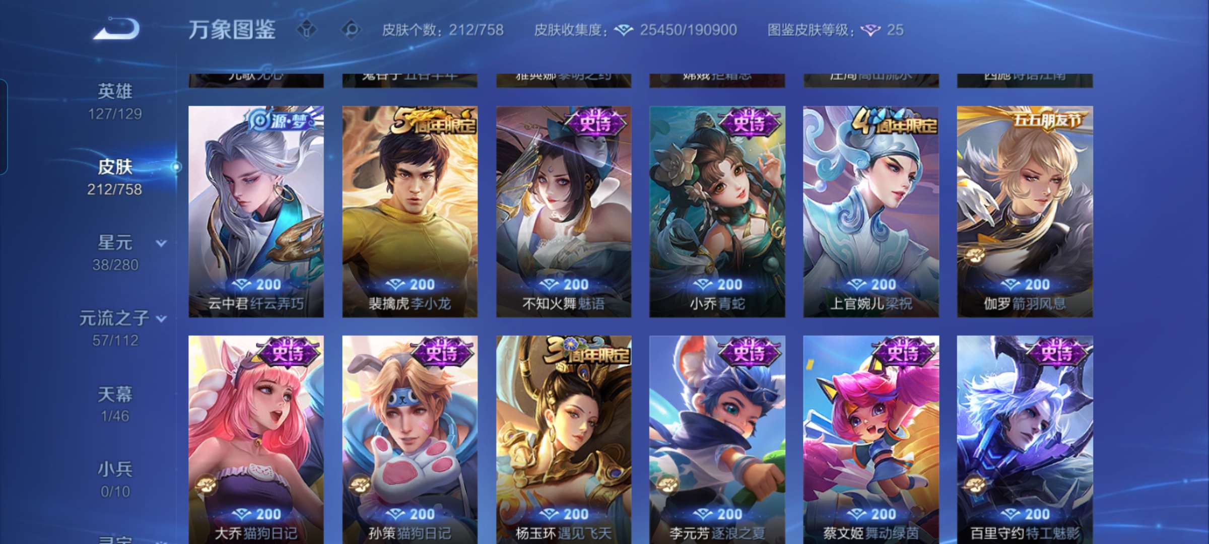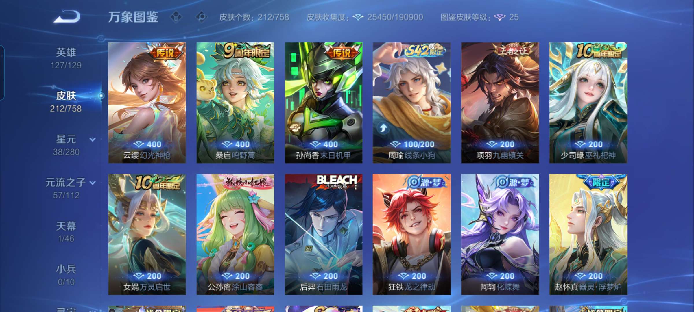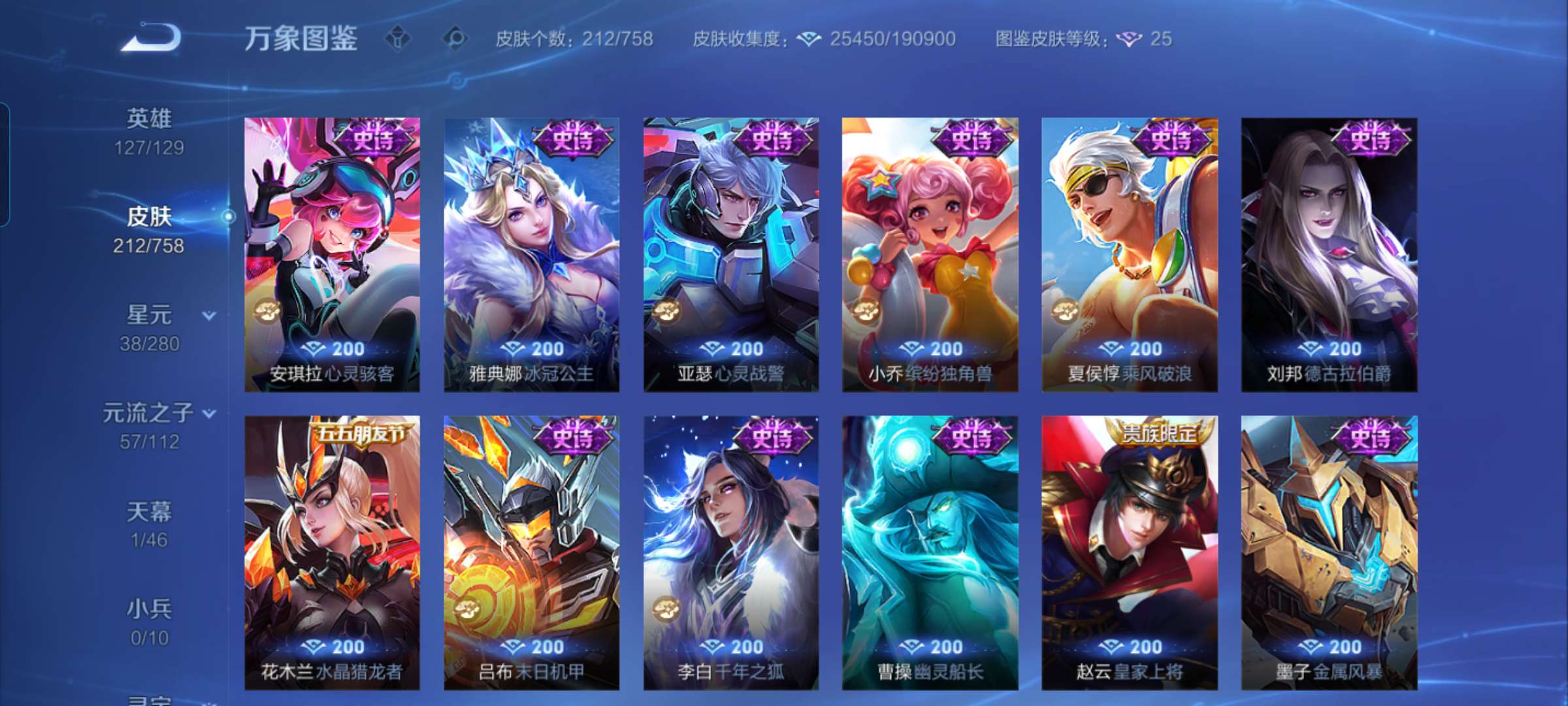 V6 皮肤211 英雄129 永恒钻石 星传说1 传说3 其他皮肤214