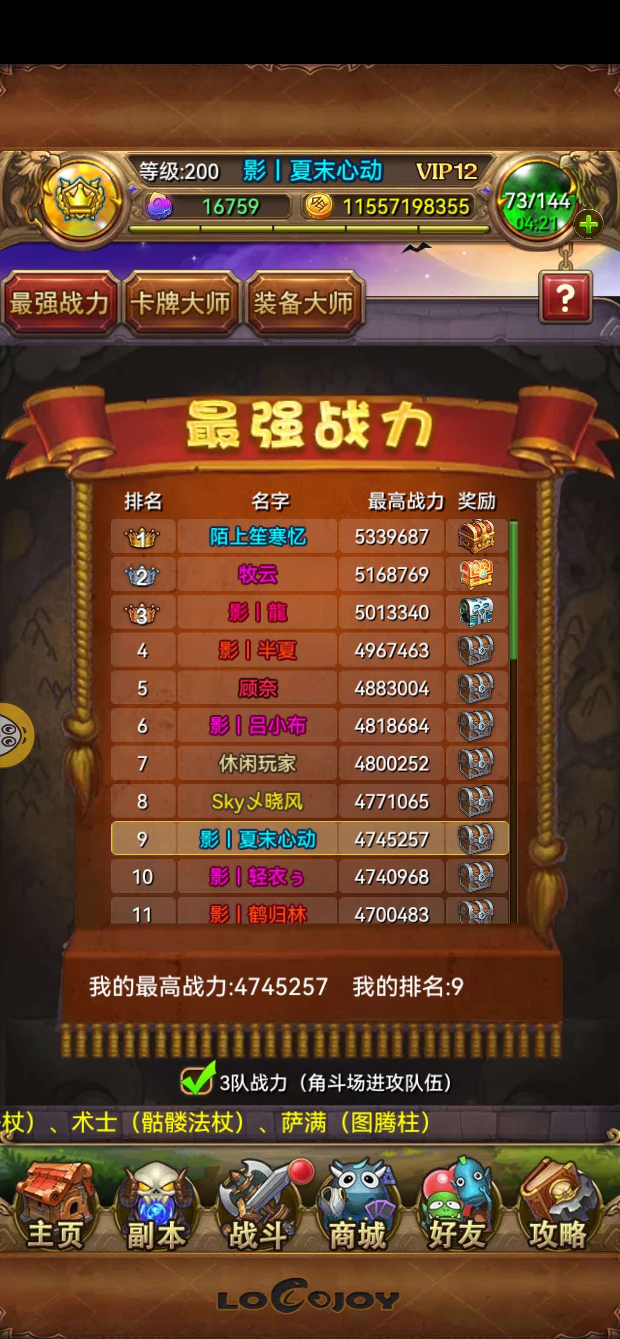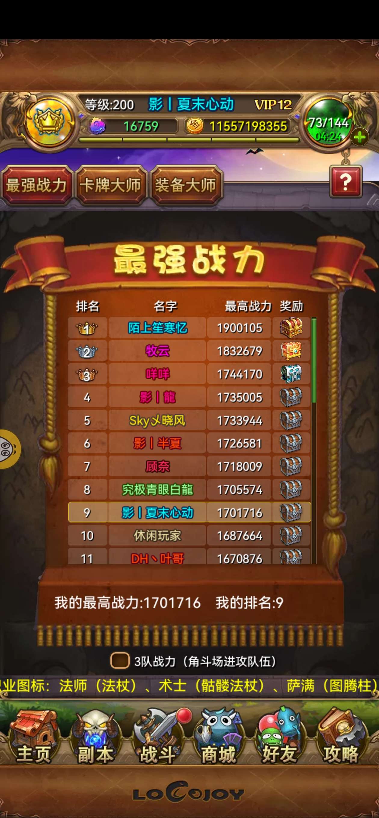 三队主流卡齐全,170区高进度,魂器不错,连续三届武道会百强选手,10奶复,单队三队均前十不上673