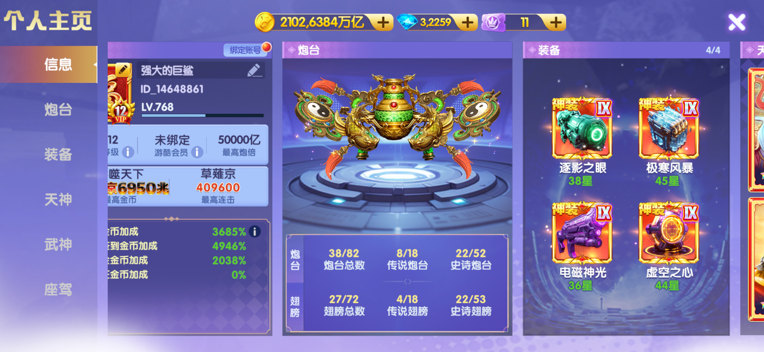 鱼乐达人官方版本,1000京出租,4万基础炮,4级洪荒,两套羁绊
