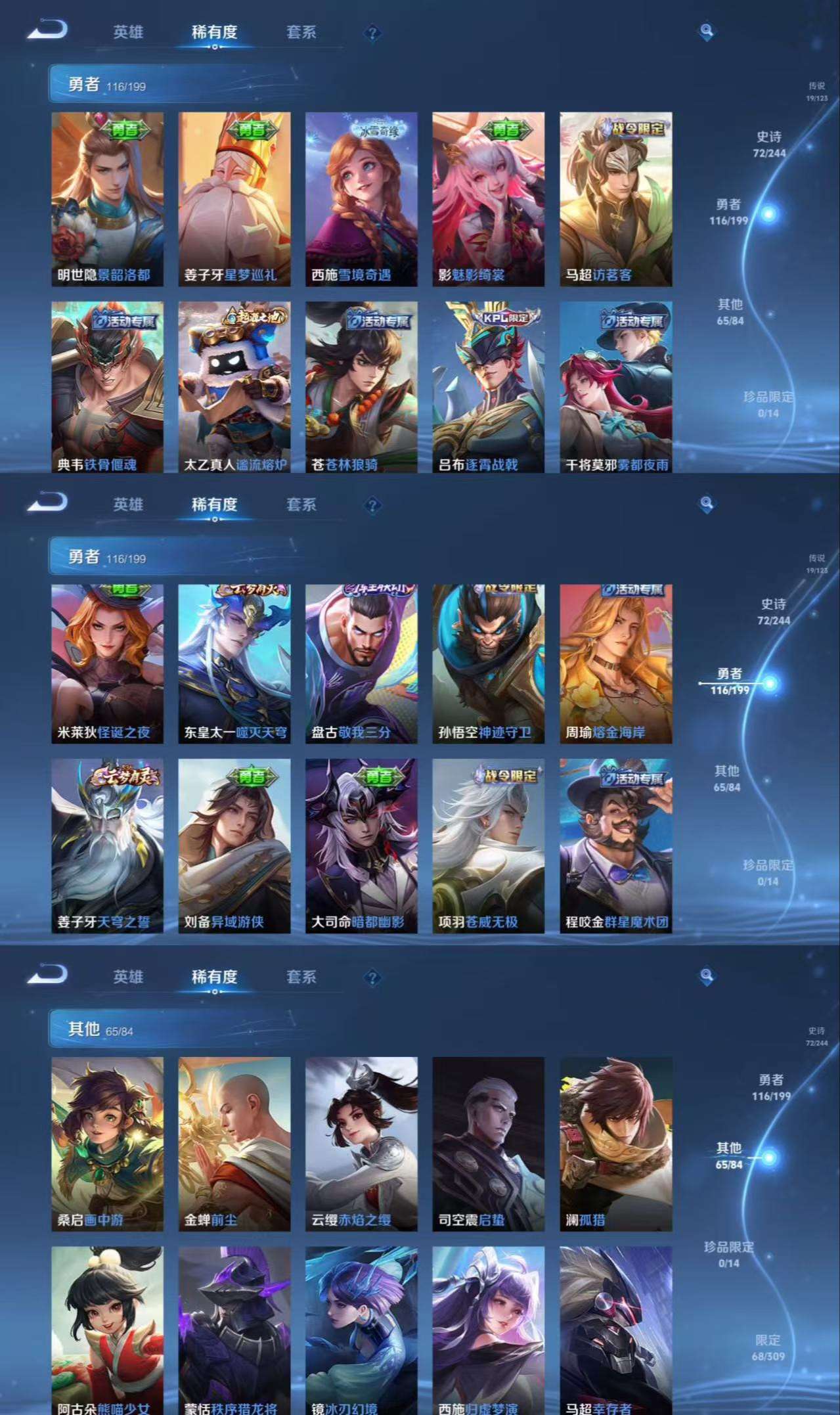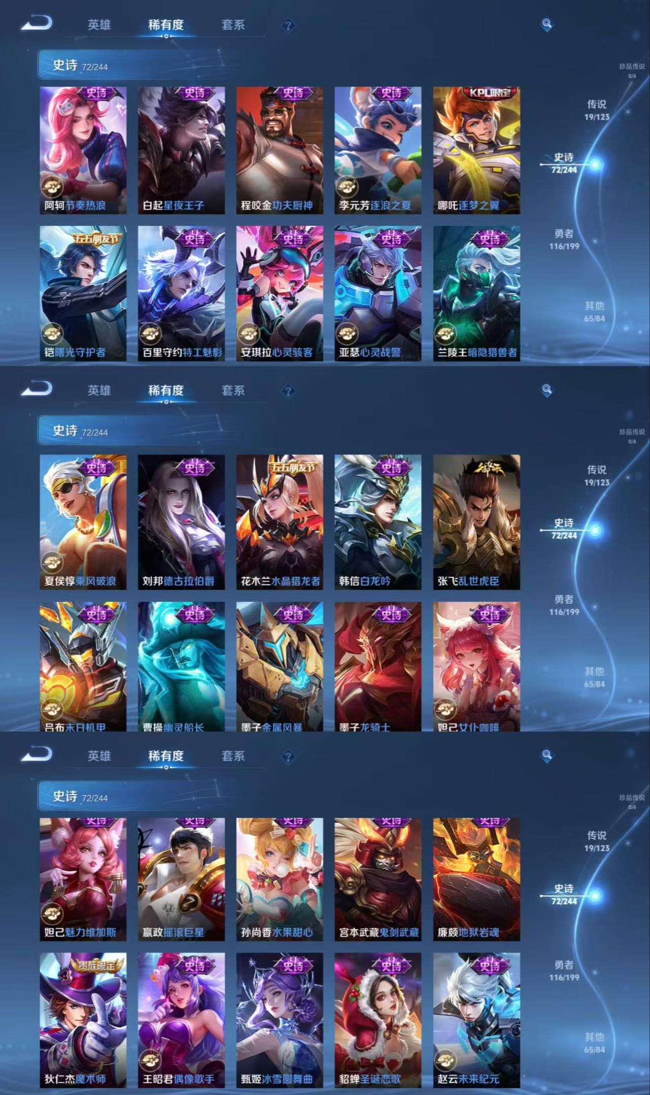 男神号274皮肤2典藏1星传说19传说72史诗68限定