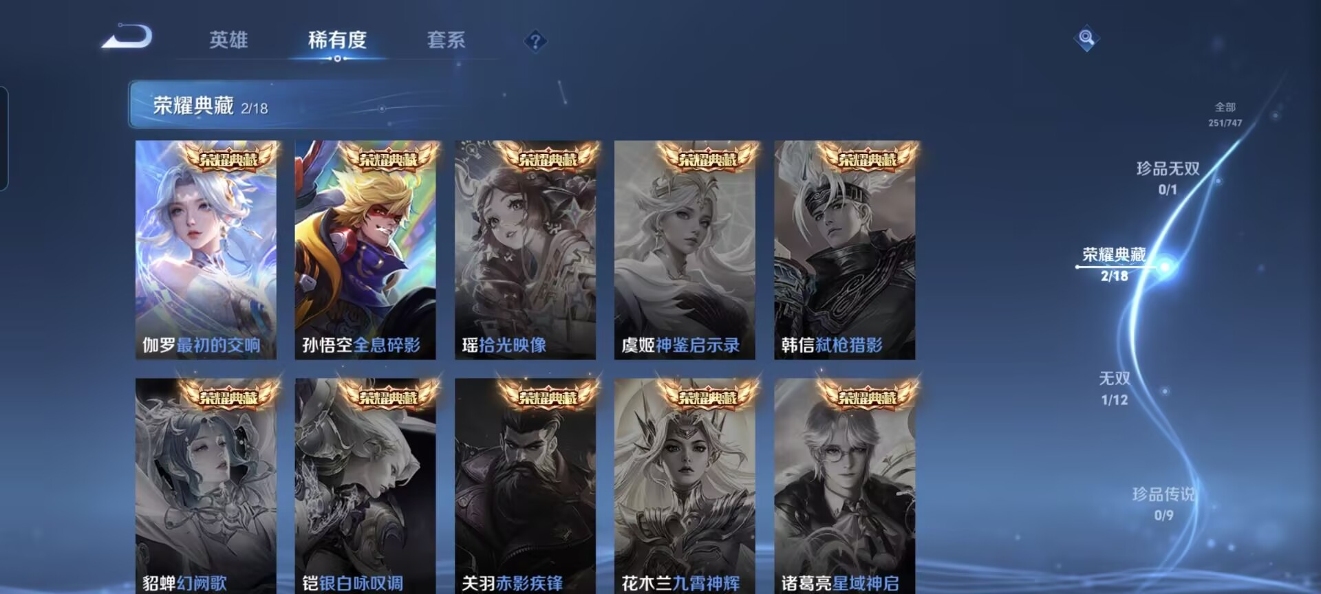 MWZ104297【251皮v7 传说10 典藏2 无双1 星传说1 未来机甲】安卓Q-251皮肤-127英雄 【无双皮肤】 天机白泽 【典藏皮肤】 最初的交响 全息碎影 【传说皮肤】 神树通天 鸣野蒿 九山相柳 愿照·众生和 愿照·岁时盈 超时空战士 末日机甲 乞巧织情 永曜之星 淬星耀世