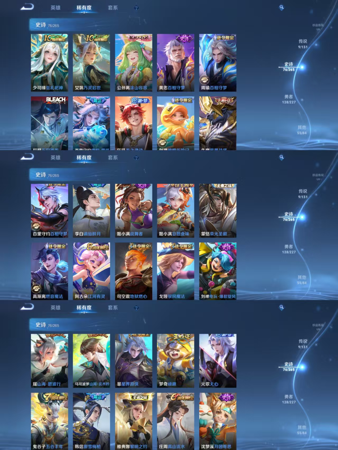 MWZ104155【V7 典藏3 珍品1 传说9 星传说未来机甲 金色仲夏夜 小国标亚瑟 万战金标姬小满对抗路52段】安卓Q-272皮肤-124英雄 【珍品传说】 朽木白哉 【典藏皮肤】 赤影疾锋 九霄神辉 星域神启