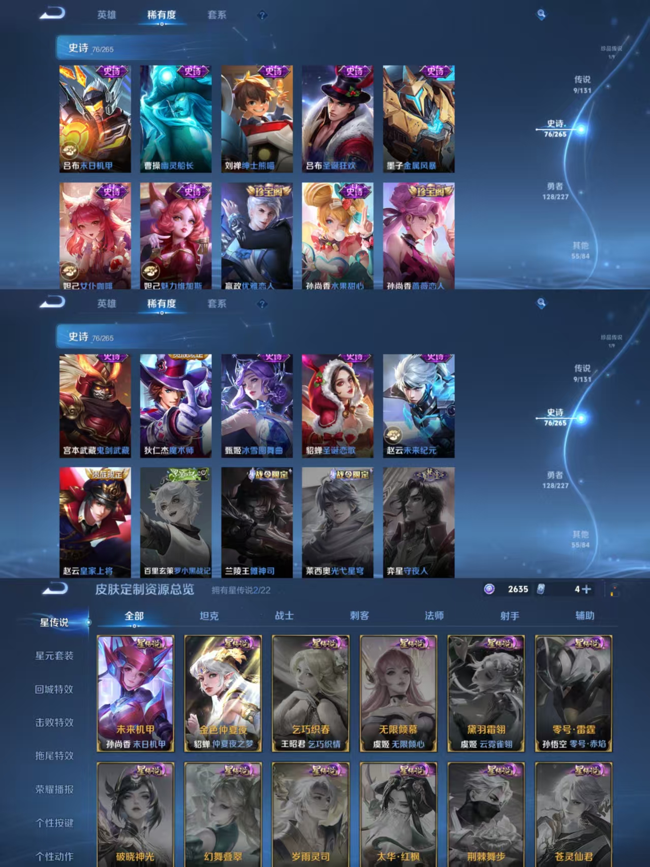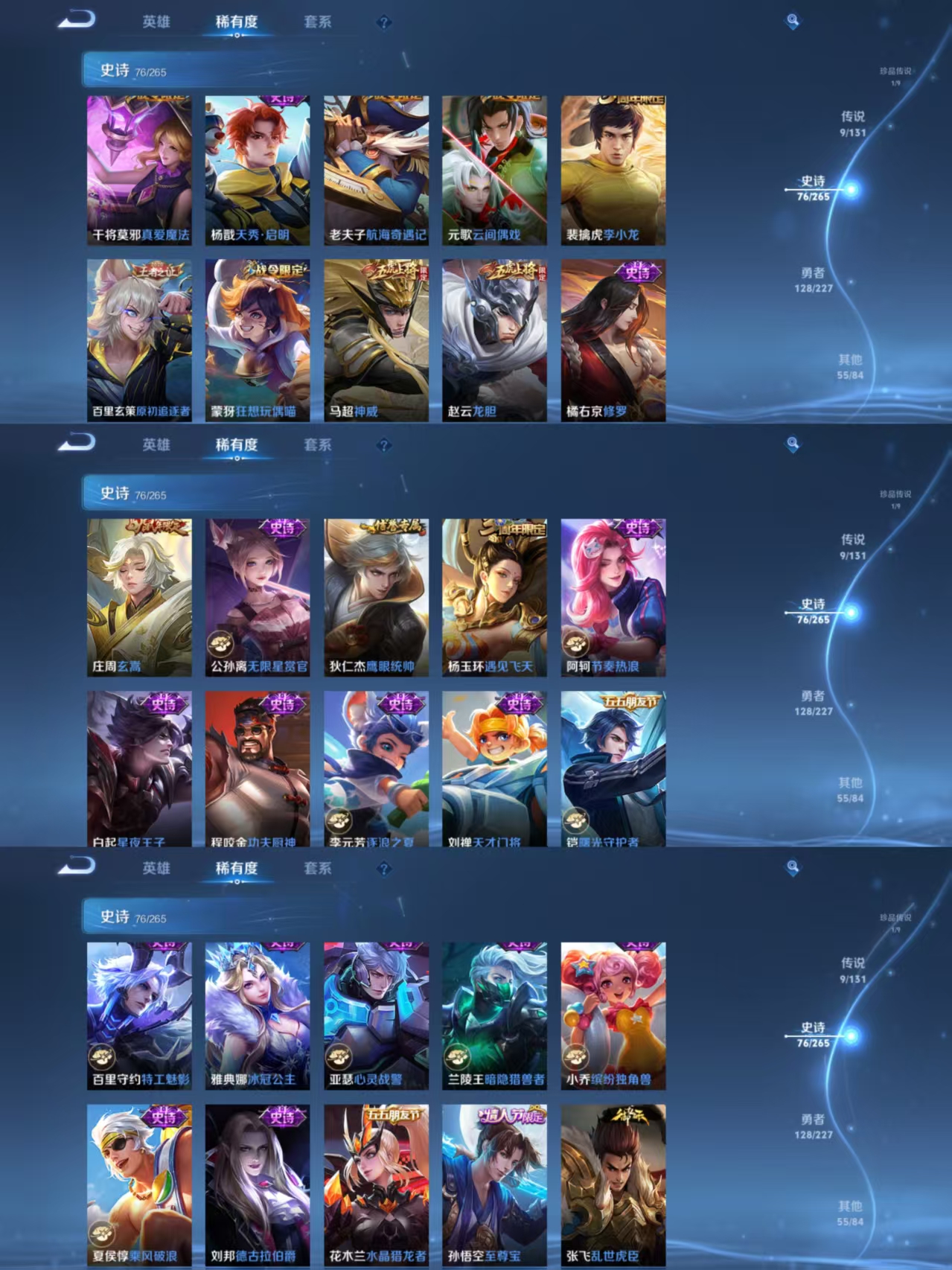 【传说皮肤】 神树通天 鸣野蒿 愿照·九州拓 齐天大圣 山海·炽霜斩 无双飞将 仲夏夜之梦 炽阳神光 胖达荣荣 【史诗皮肤】 战舞者 星界战将 百相守梦 傲雪梅枪 布丁狗之约 谧流熔炉 神威 涂山容容 至尊宝 鸭鸭历险记 龙之律动 地狱燃心 谪仙醉月 山海·玄木吟 玄嵩 山海·碧