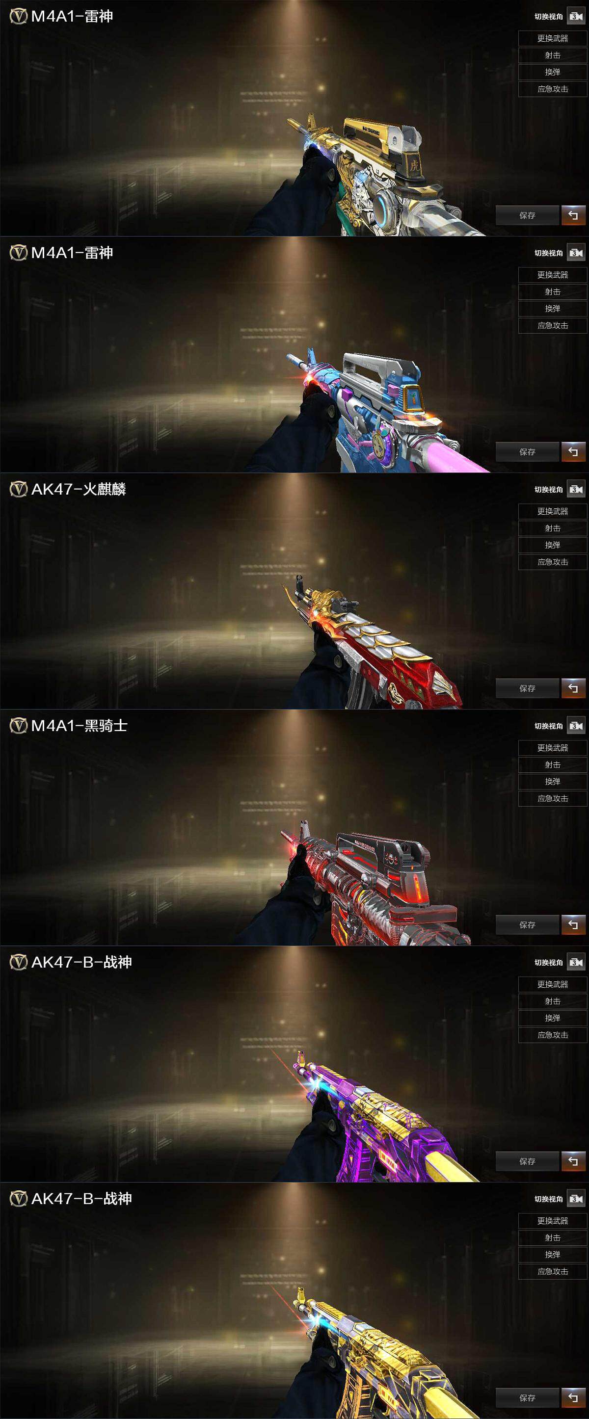 【热门武器】:传说圣灵,QBZ03-金色蔷薇,M200-幻神,Kar98K-星神,M4A1-黑骑士,汤姆逊-烈龙*6,RPK-盘龙*4,加特林-炼狱,斯泰尔-蝴蝶
