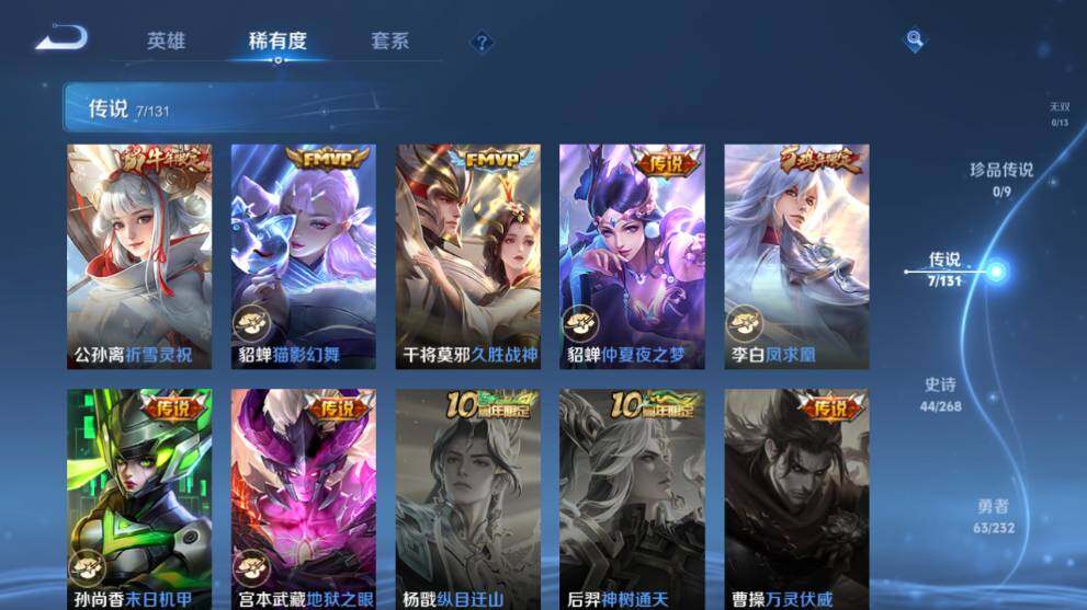 安卓Q-V7-151皮肤-7传说-44史诗-2星传说-夺宝267次【传说】公