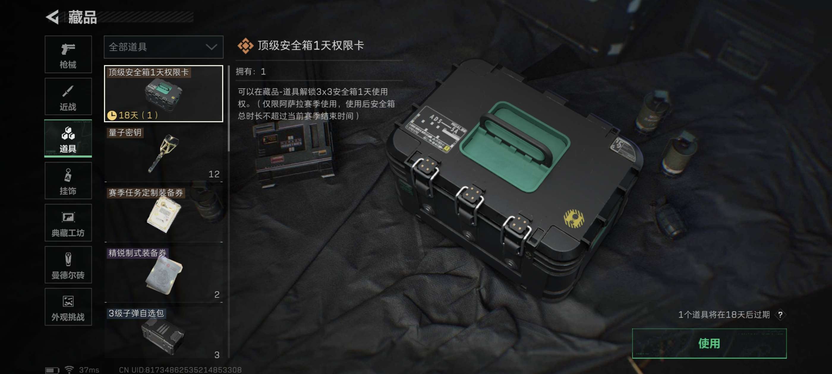 367m仓库 181m纯币 满体满负 3x3保险 70发AP 34m收藏室 仓库多红和装备 可二次