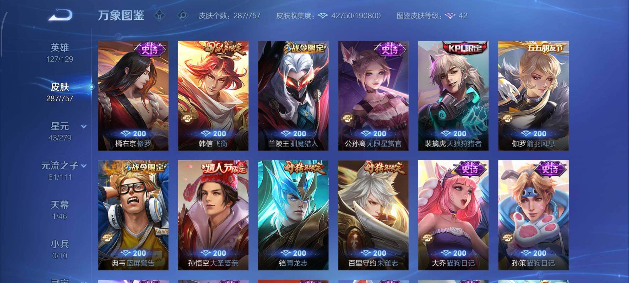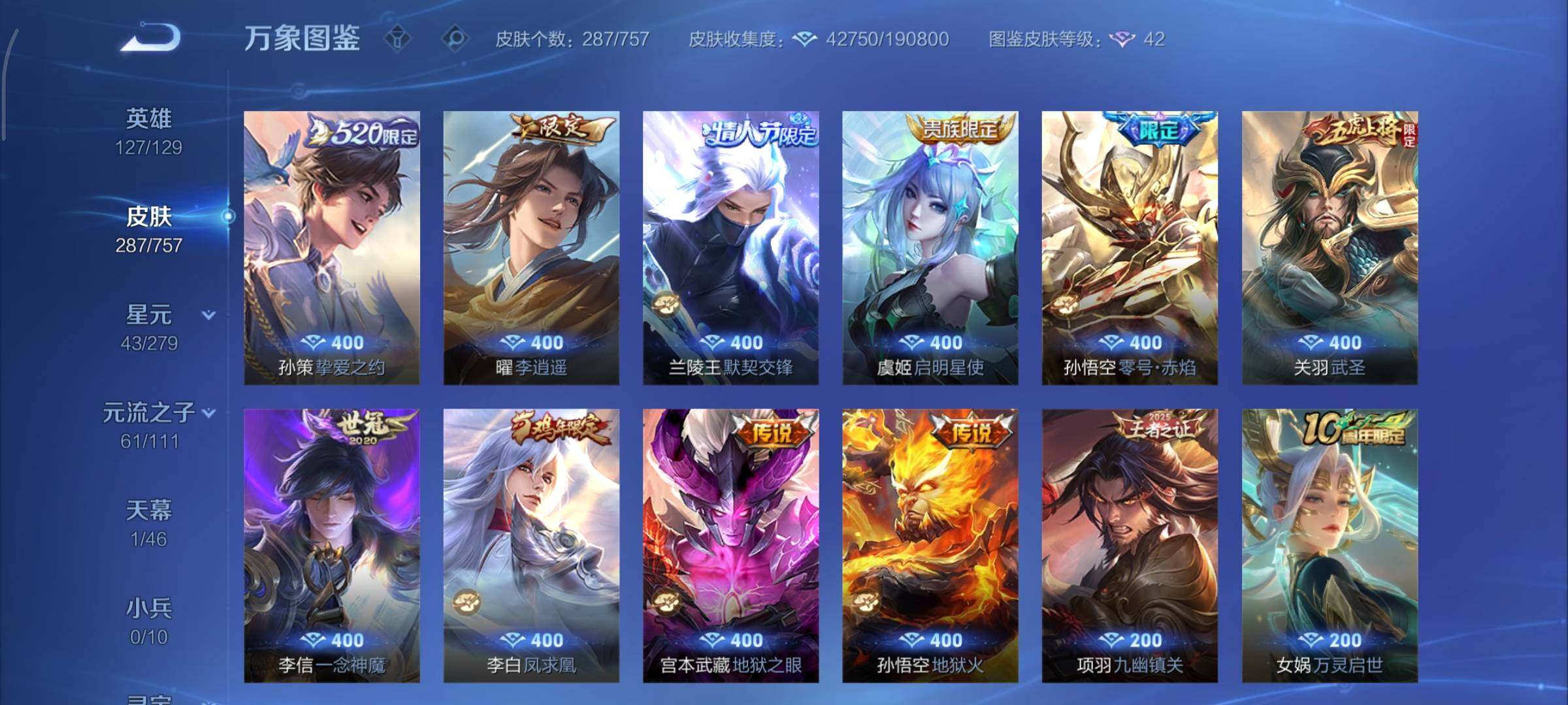 可换绑【精品打野战士号 五虎上将 李白典藏 铠琥珀纪元 李逍遥 凤求凰 520