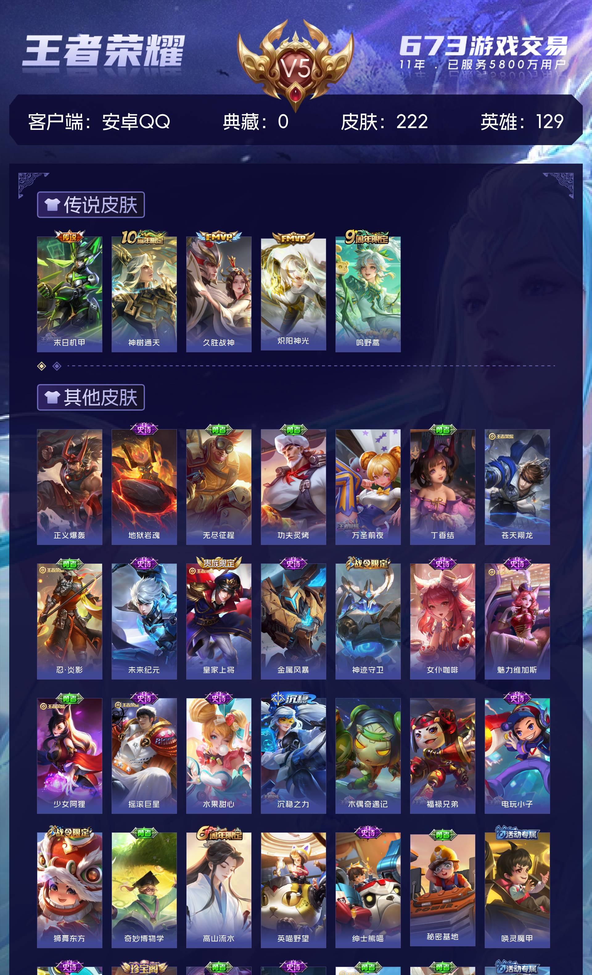 V5 皮肤222 英雄129 永恒钻石 星传说1 传说5 其他皮肤223