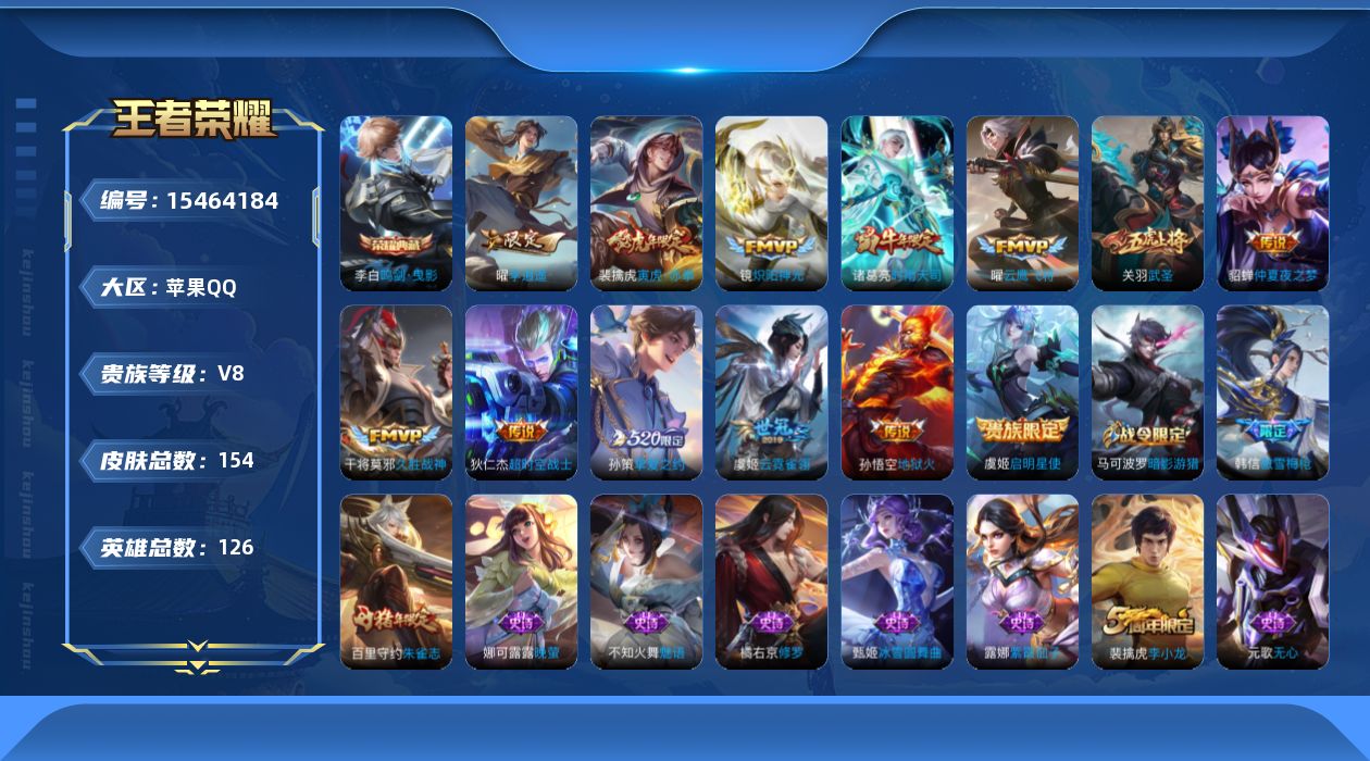 [15464184]V8 1典藏 13传说 126英雄 154皮肤 可修改实名