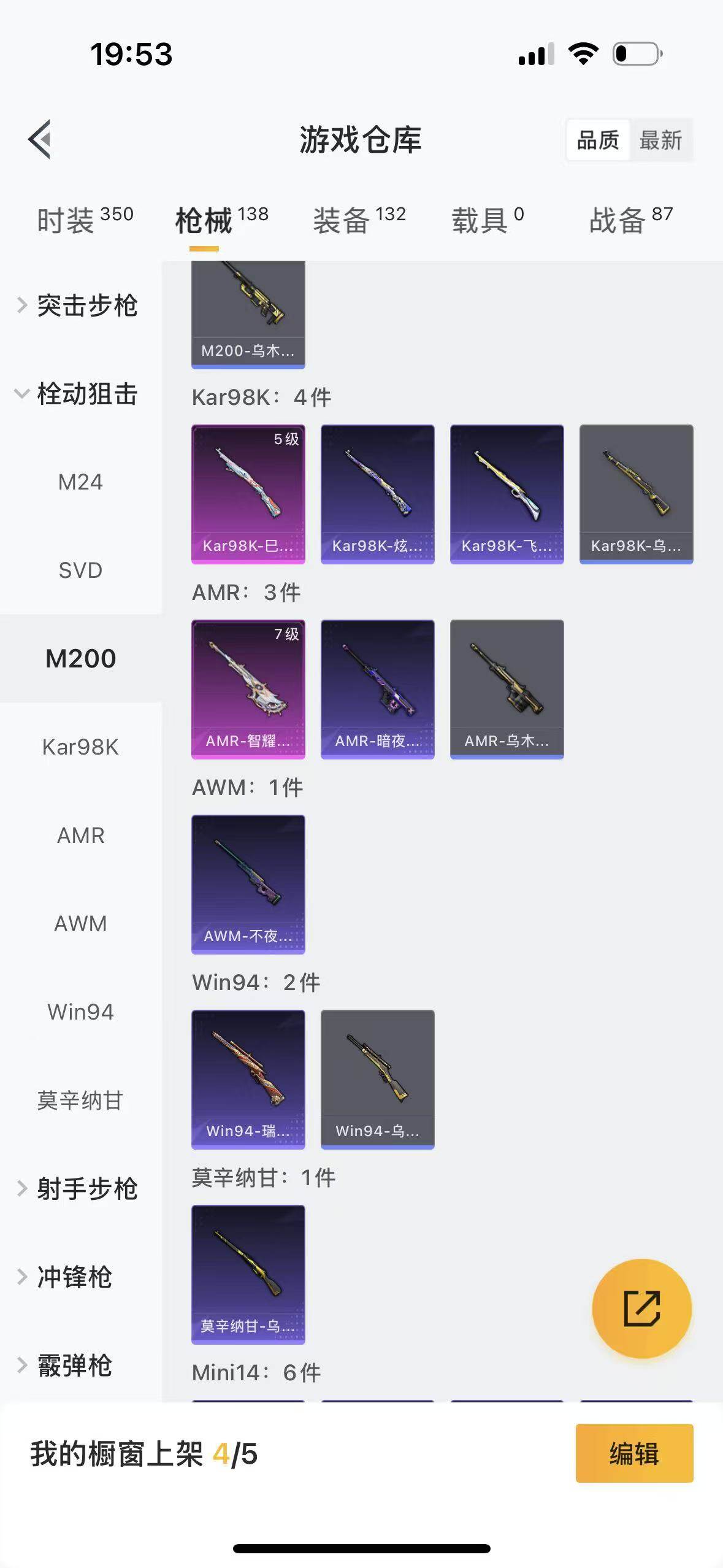 【粉色枪皮等级】:Kar98K-巳巳如意(五级),AMR-智耀战神(七级)