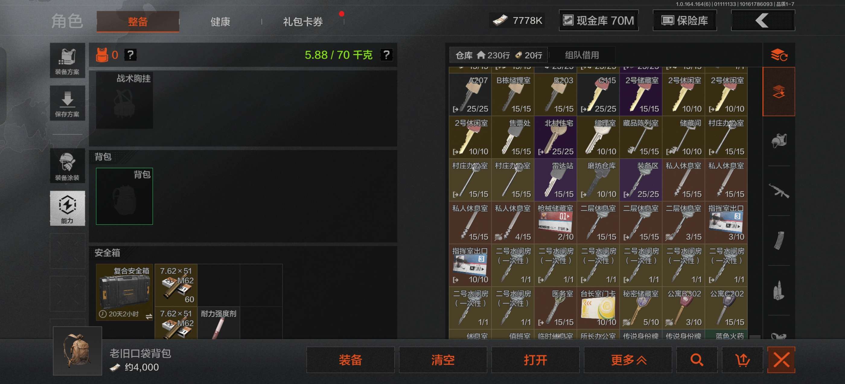 t7多,钥匙多,有19天六格,价格可小刀,现金库里有科恩币