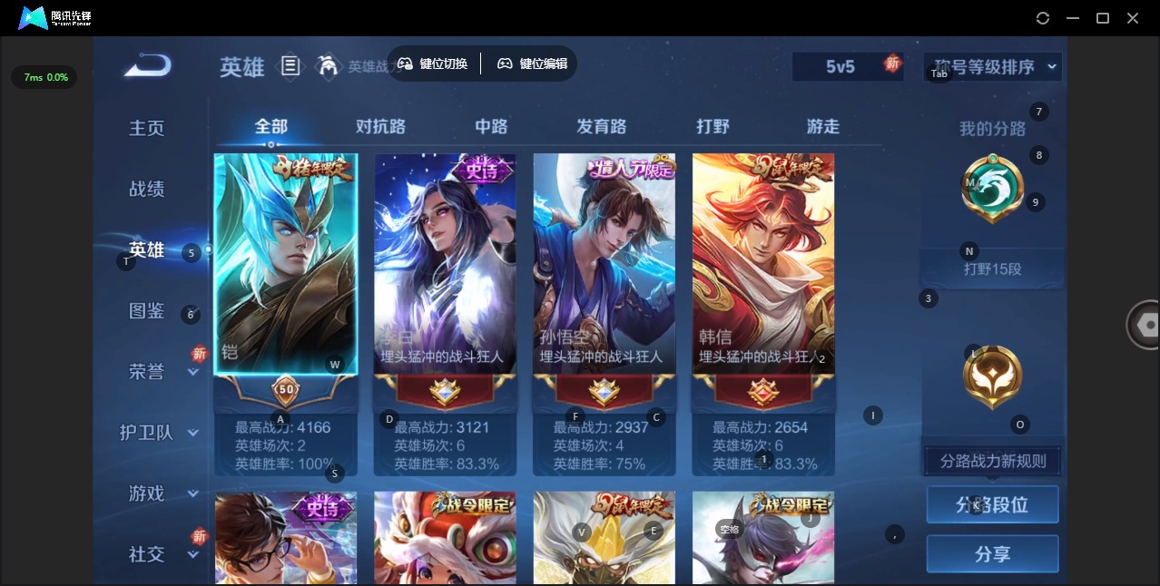 V8 2典藏 9传说 125英雄 218皮肤 可修改实名