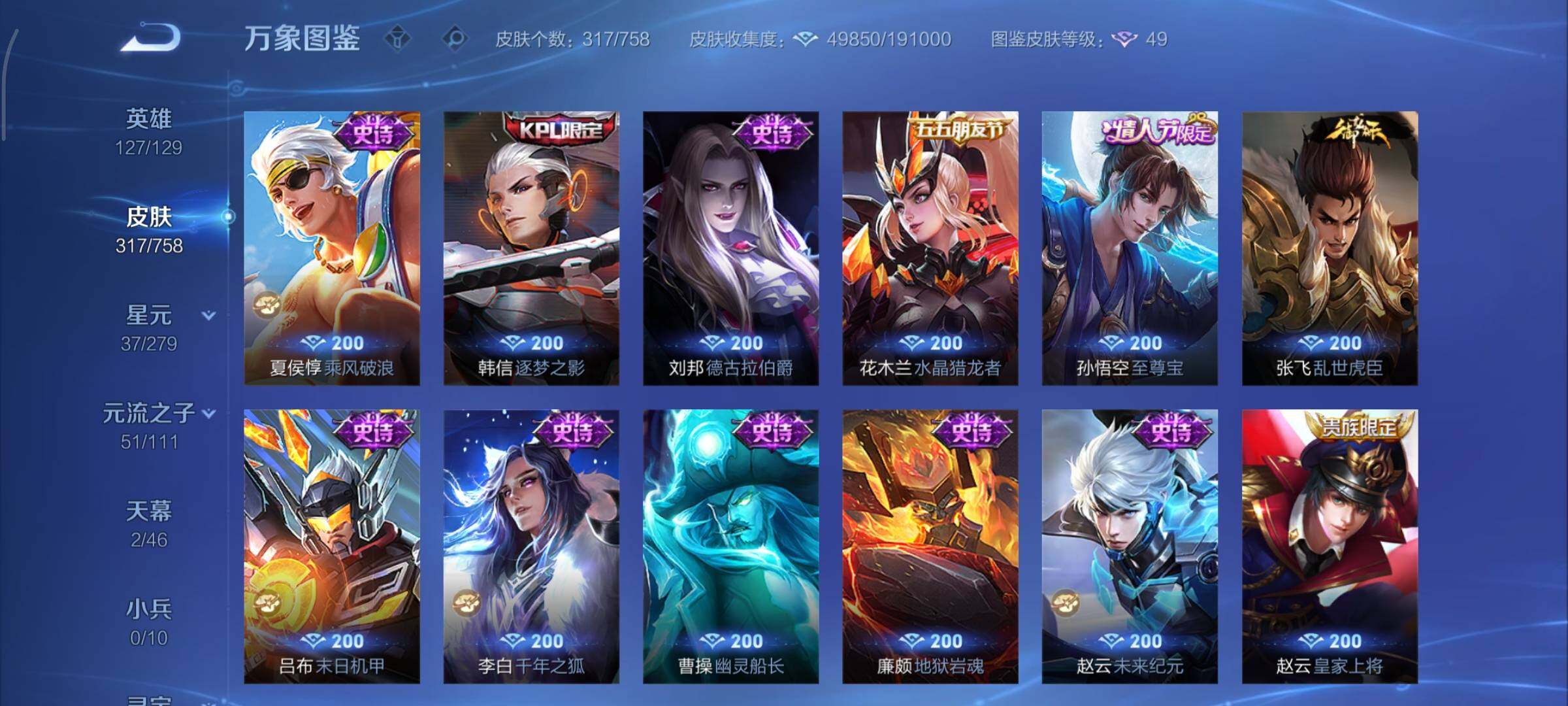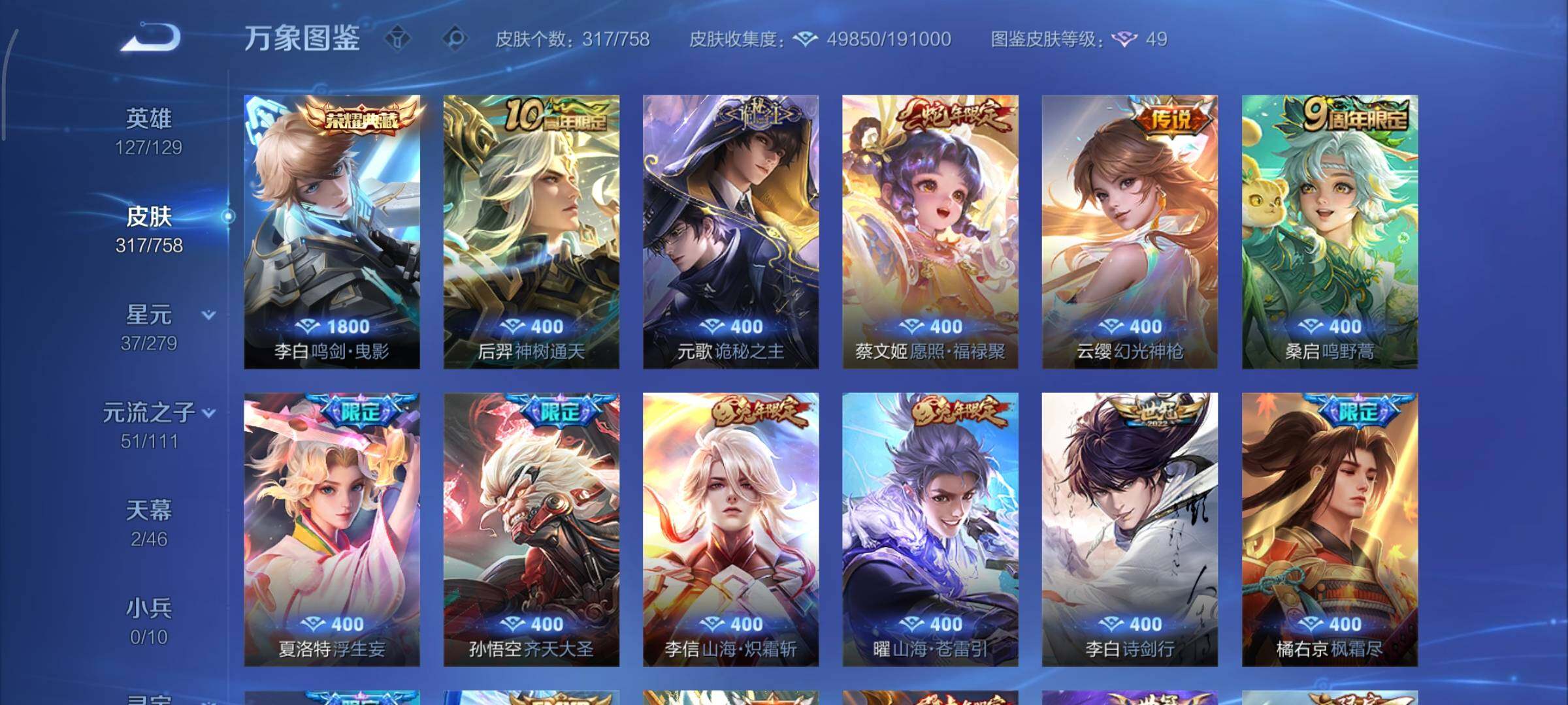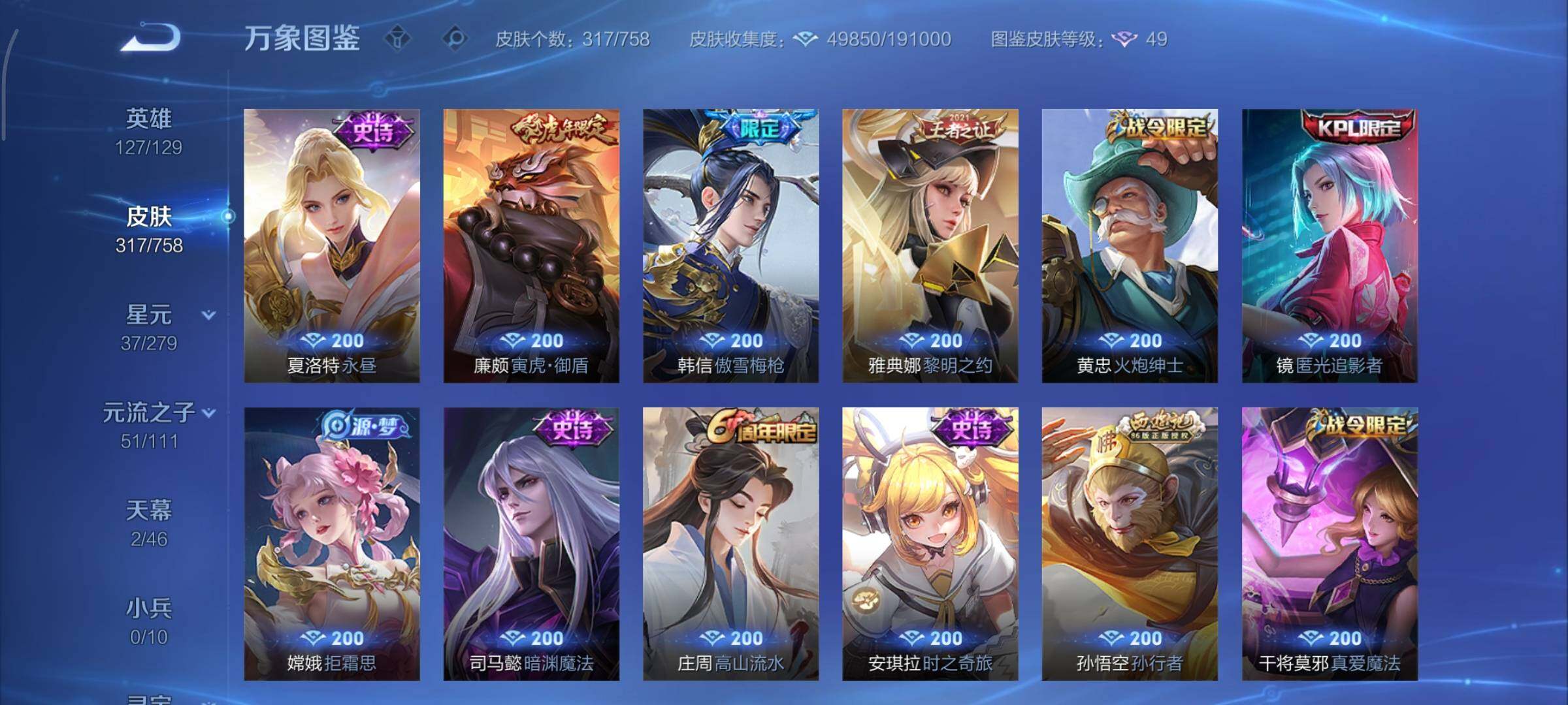 可换绑【对抗路55段 金标万战夏洛特 金标元歌影 李白典藏 浮生妄 李逍遥 傲雪梅枪 神威 多传说限定号】幸运值291 5按键,3星传说,1天幕,18王者印记,五级铭文290,可二次KK7666,安卓Q-V8-317皮肤-1典藏皮肤-29传说-106史诗【英雄全皮】:元歌全皮,橘右京全皮,李信全皮,夏洛特全皮,影全皮【荣耀典藏】:李白鸣剑曳影【星元皮肤】:宫本武藏