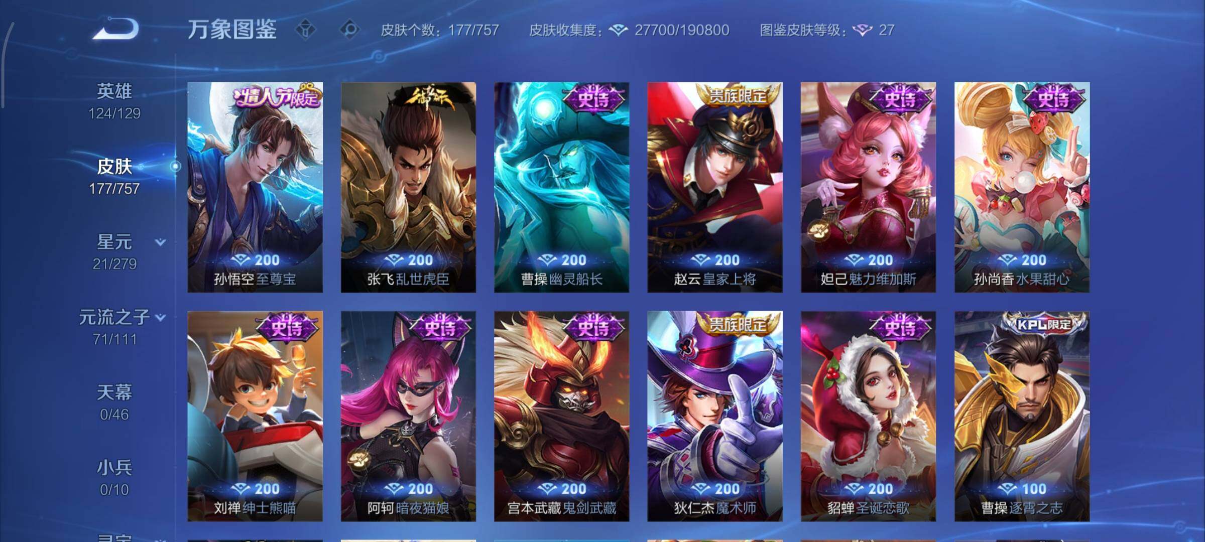 可换绑【瑶典藏 孙策珍品 520孙策 蛇年限定 多传说限定质量号】幸运值203