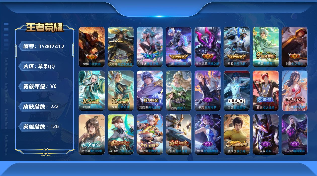 [15407412]V6 9传说 126英雄 222皮肤 可修改实名
