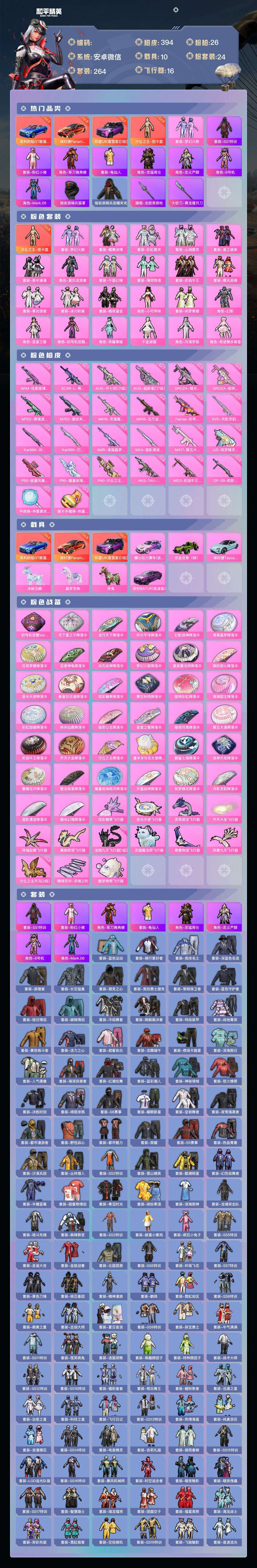 a4222/安卓v/热力值:160334,1神装,23粉装,26粉枪,10载具,51粉色战备,26