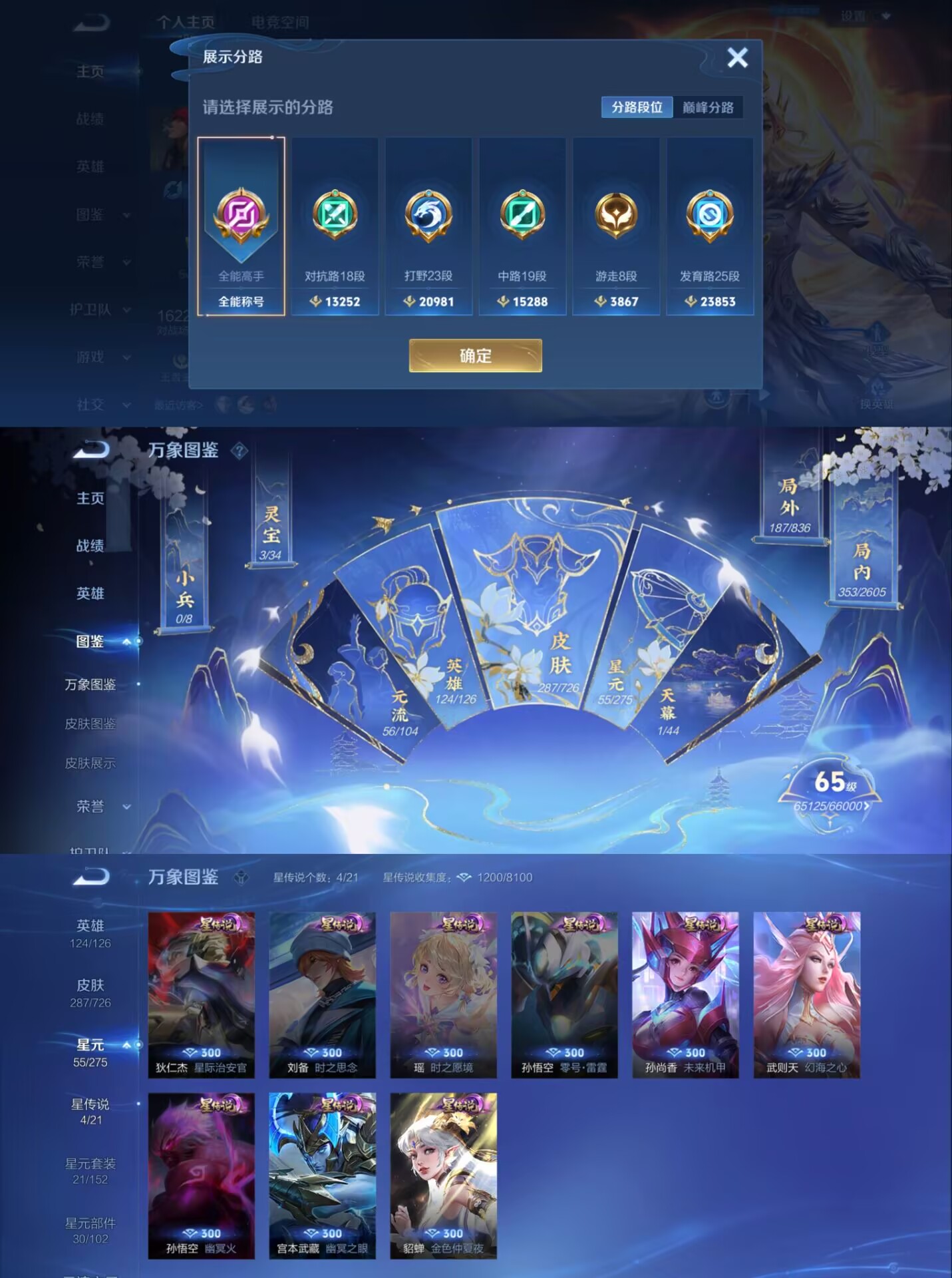【传说皮肤】 浮生妄 鸣野蒿 愿照·岁时盈 音你闪耀 白虎志 黄金狮子座 仲夏夜之梦 地狱之眼 炽阳神光 凤求凰 一念神魔 末日机甲 云鹰飞将 启明星使 武陵仙君 【星传说】 未来机甲 幻海之心 幽冥之眼 金色仲夏夜
