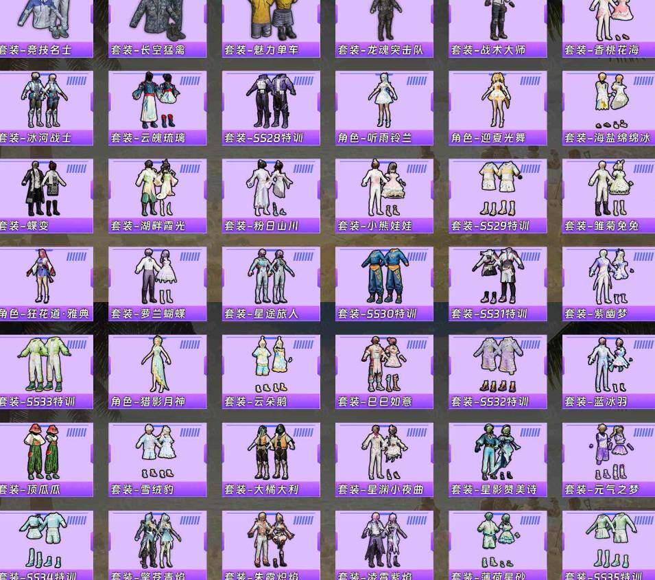 【粉色套装】:角色-小蓝,角色-美雪,角色-美琪,粉装-金丰海韵,粉装-星穹咏叹调