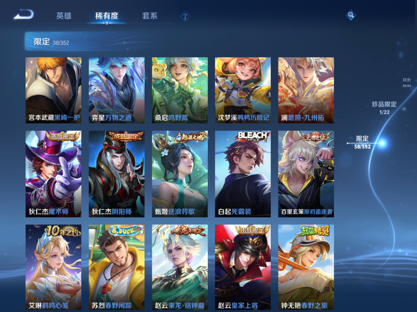 MWZ104299【v7 18传说 1珍品传说 1星传说 星际治安官发育路22段】苹果Q-128皮肤-125英雄 【珍品传说】 黑崎一护 【星传说】星际治安官【传说皮肤】 黄金天蝎座 神树通天 电玩·雷克斯 灼幽烈阳 鸣野蒿 死亡执政官 琥珀纪元 琥珀纪元 乘龙·铭钟鼎 祥瑞亨通 愿照·九州拓 落雪白狼 诗剑行 黄金狮子座 超时空战士 黄金射手座 云鹰飞将 淬星耀世 【史诗皮肤】 如梦令 布丁狗之约 谧流熔炉 狼魂孤将 鸭鸭历险记 踏浪烽翎 百相守梦 万灵启世 化蝶舞 石田雨龙 幽灵船长 魔术师