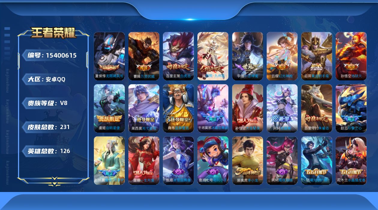 [15400615]V8 1典藏 8传说 126英雄 231皮肤 可修改实名