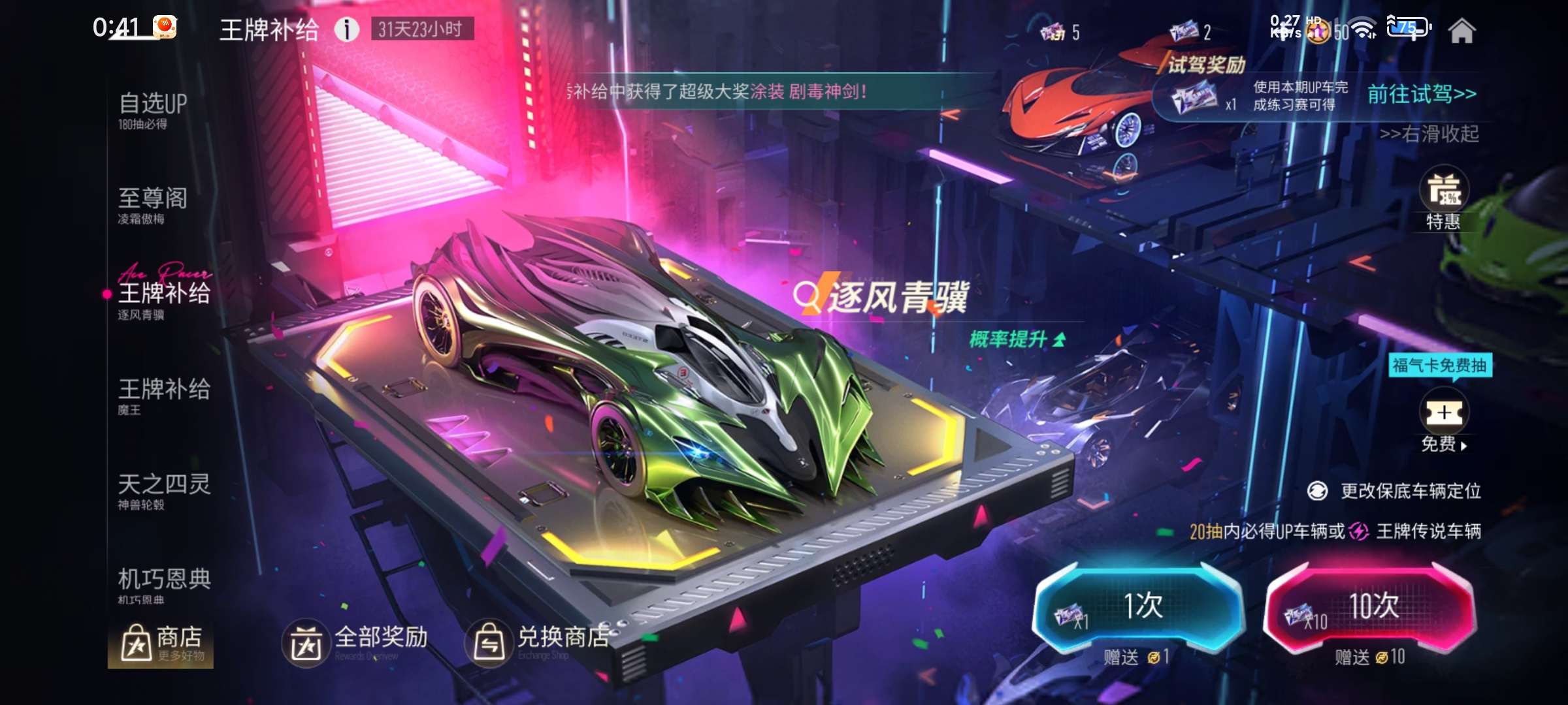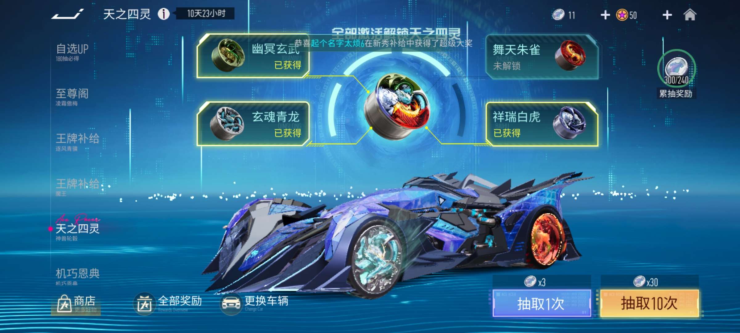 4灵轮毂差一个,王牌补给快出车了,买18元福气卡时尚节门票可以抽一张出来。