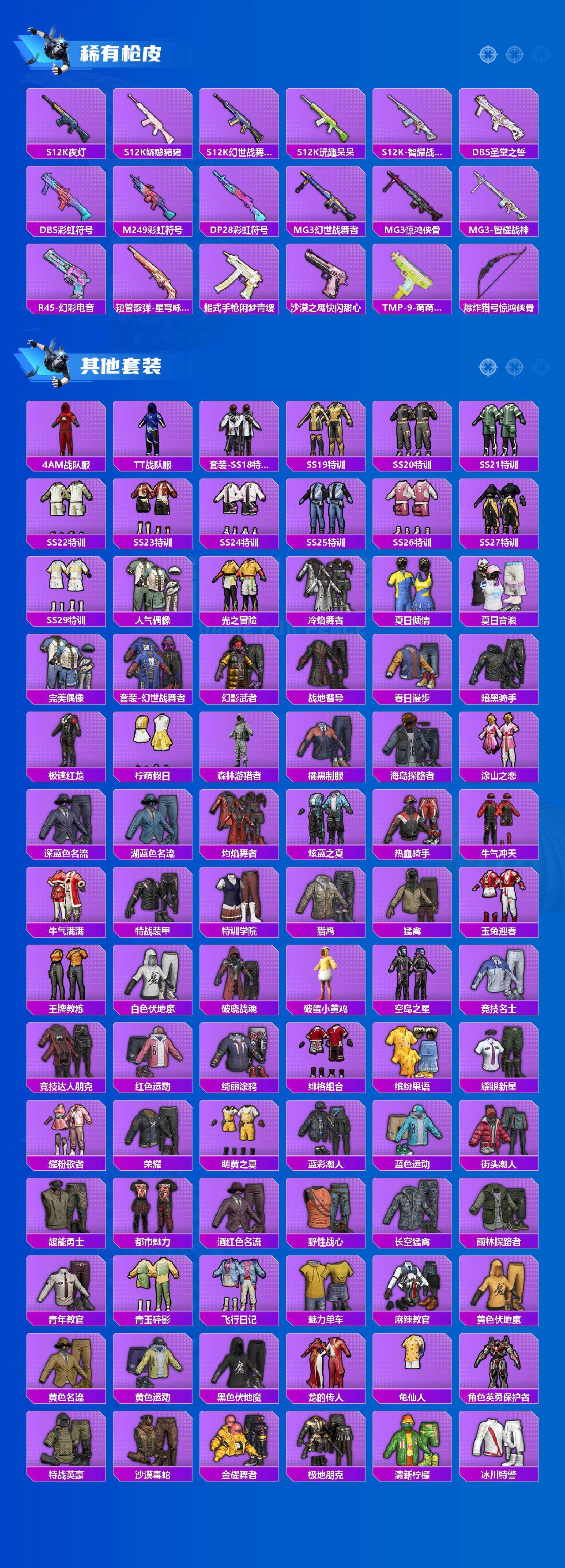 【粉色枪皮等级】:AKM-绿萝繁花(五级),SCAR-L-锦绣绵绵(五级),GROZA-镜光银凌(五级),AUG-暖羊咩咩(五级),Kar98K-巳巳如意(五级),MK12-雪月幻音(七级),DP-28-豹影疾电(