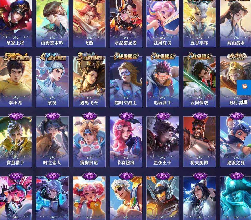 安卓Q-V6-最强王者段位-126英雄-241皮肤-4传说-55史诗【英雄全