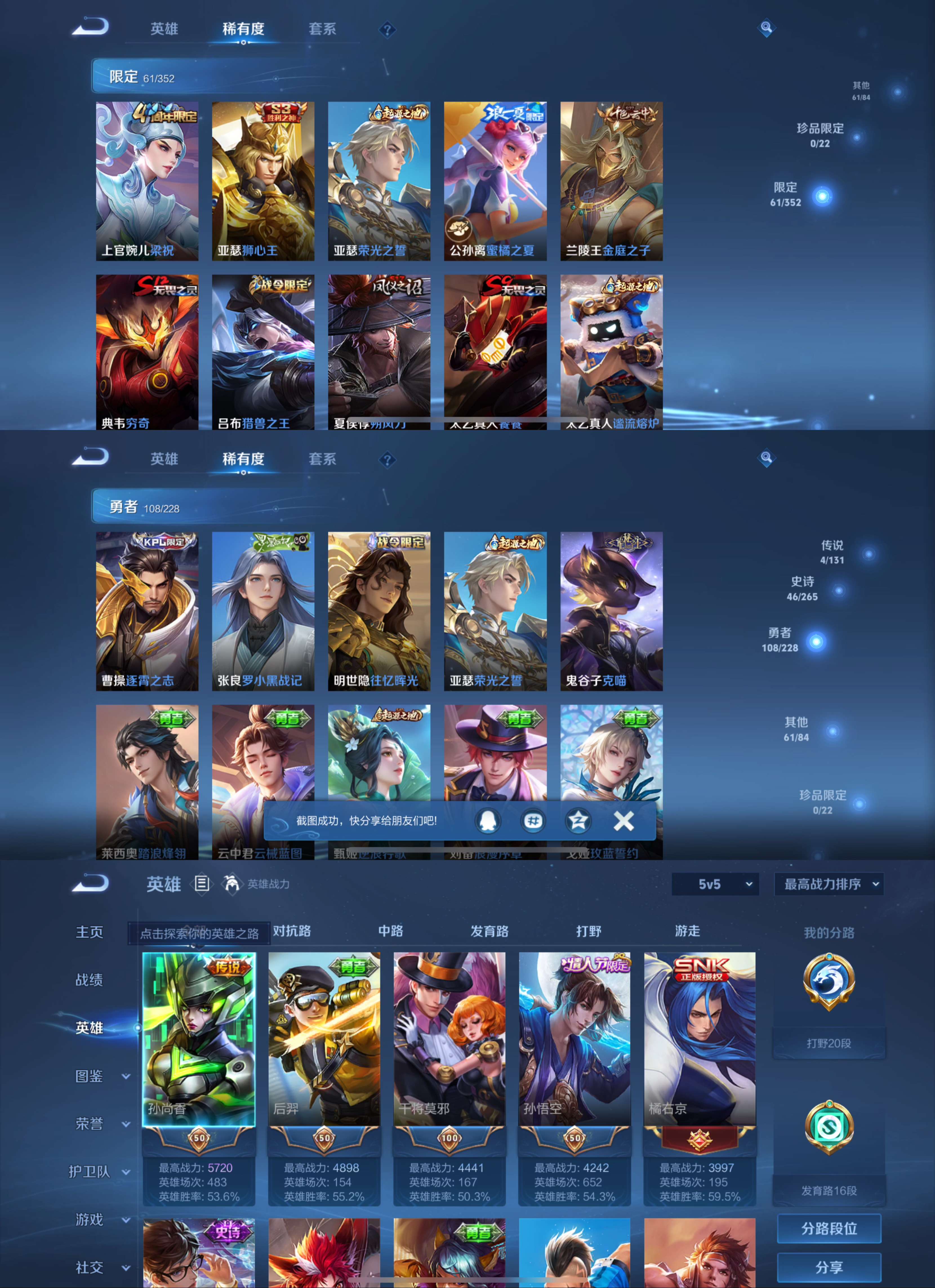 JJ3820:苹果Q【V7 至尊宝 胖达荣荣 云鹰飞将 末日机甲 超时空战士 白龙吟 星币2992-吃鸡34套装27枪皮】荣耀王者-125英雄-219皮肤-4传说-44史诗-无二次