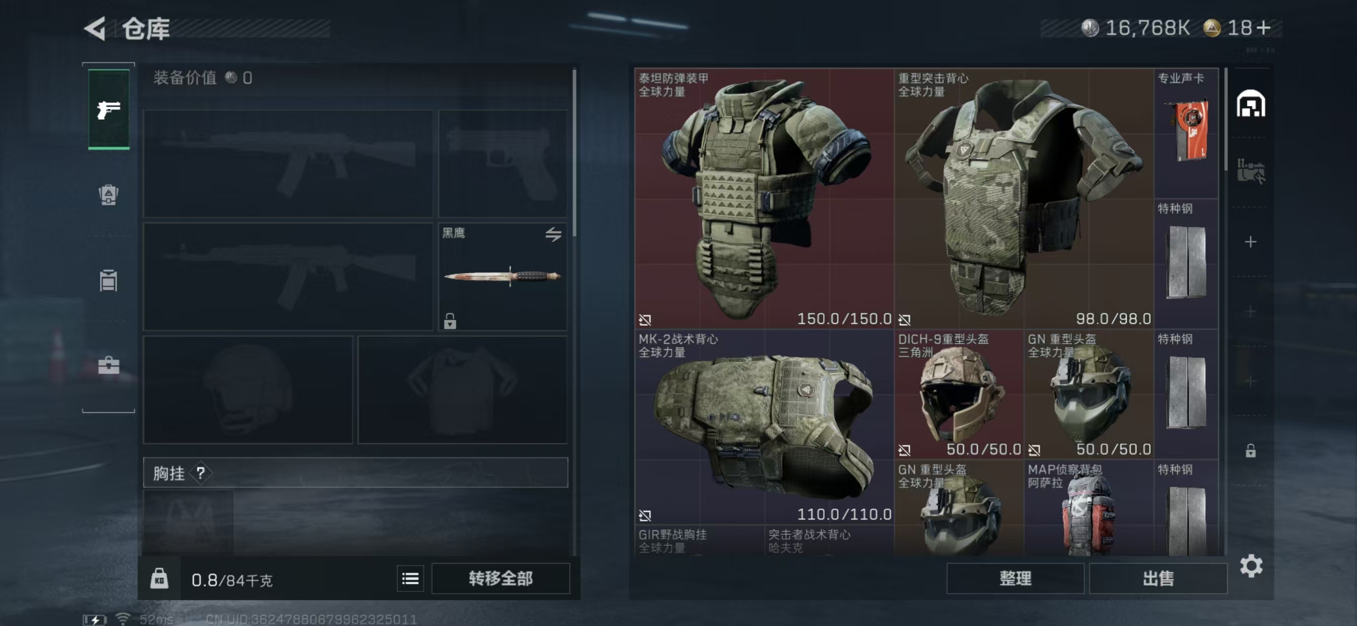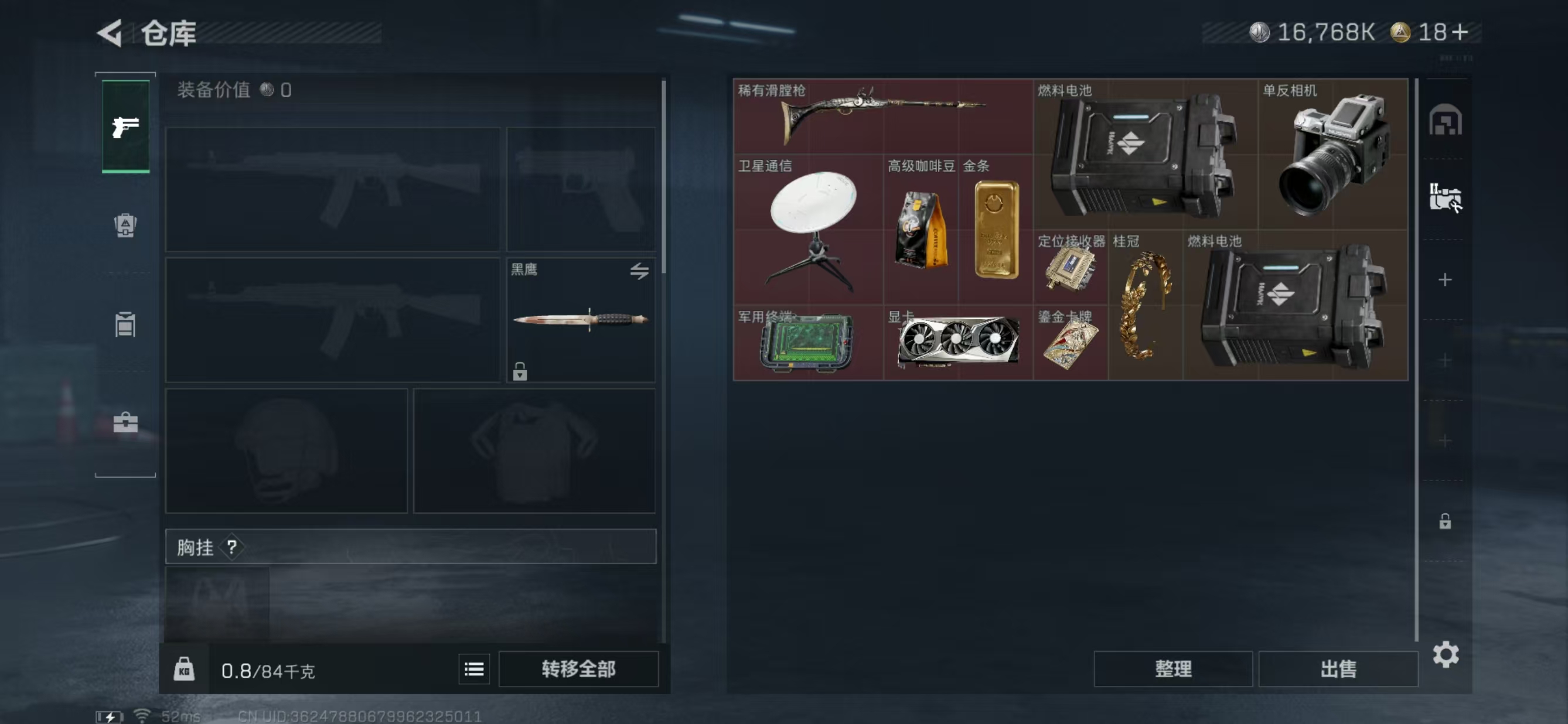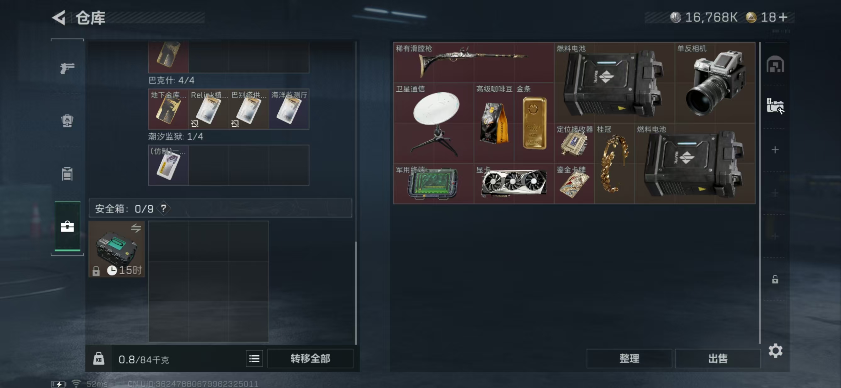总价值44.5M-哈夫币16768k-烽火地带等级60-烽火地带
