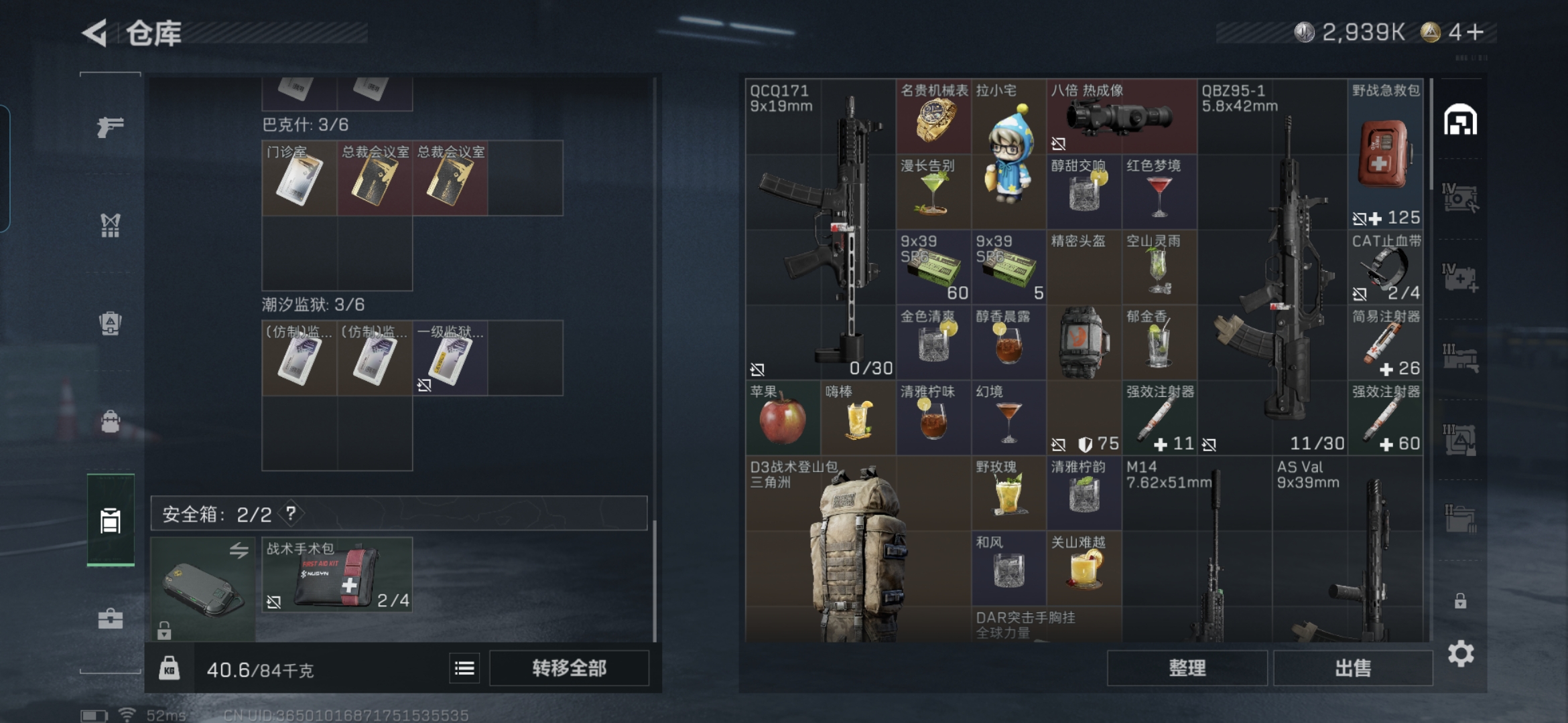 【总资产(M)】66.05【哈夫币】2939k【行动等级】60