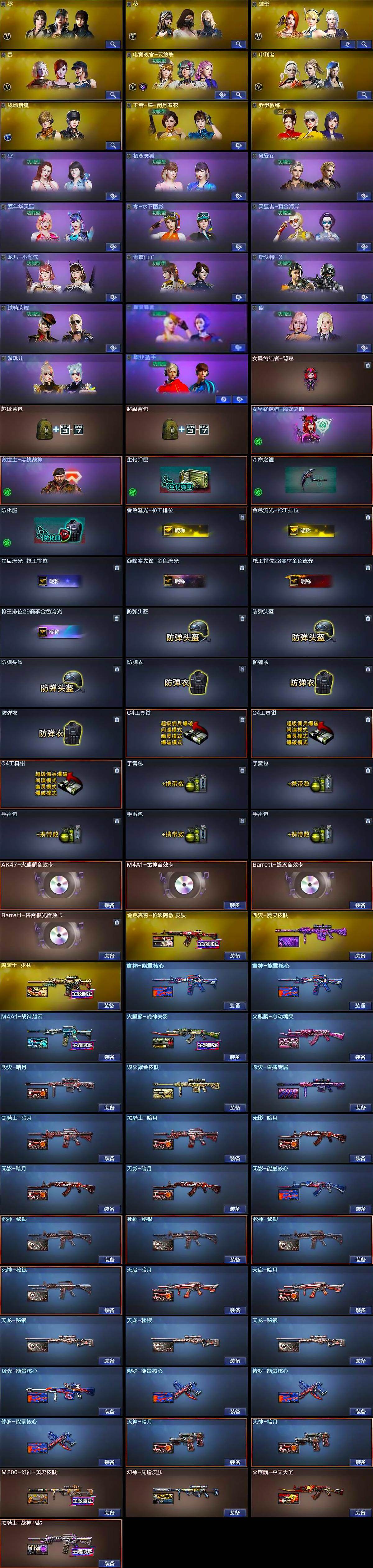 【热门武器】:传说暗裔,QBZ03-金色蔷薇,M14EBR-玄武,HK417-朱雀*2,M4A1-青龙,M200-幻神,M200-竞技荣光,死亡之眼*4,M4A1-黑骑士,汤姆逊-烈龙*5,RPK-盘龙*4,加特林-炼狱,斯泰尔-蝴蝶,USP-雷暴*2,沙鹰-修罗*4,金刚伞
