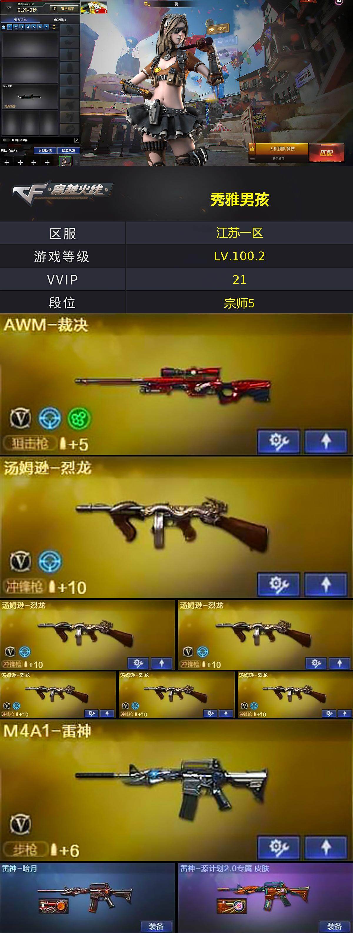 江苏一区-21V-0王者-0炫金【热门武器】:死亡之眼,M4A1-黑骑士,汤
