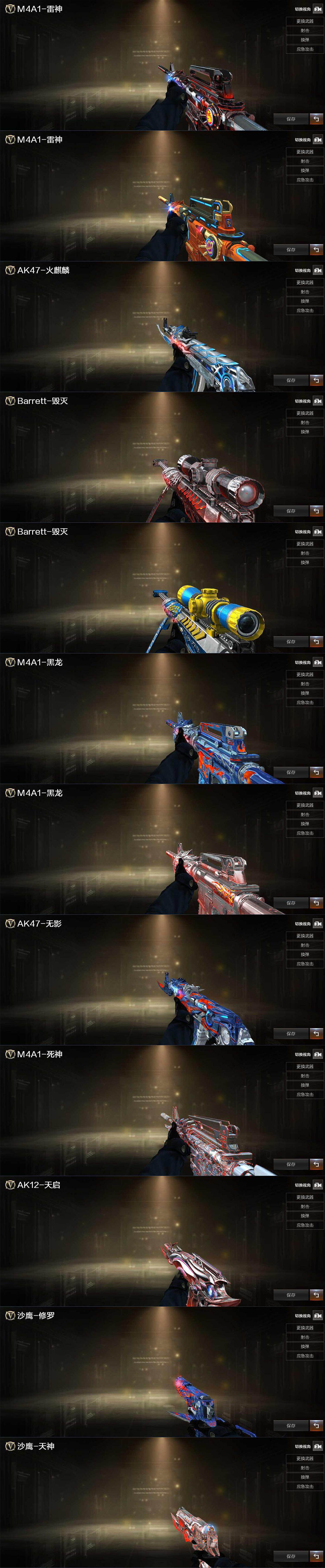 【皮肤】:雷神-暗月,雷神-源计划2.0专属 皮肤,火麒麟-雷神,毁灭-暗月,毁灭-荣耀之怒,黑龙-能量核心,黑龙-暗月,无影-能量核心,死神-秘银,天启-暗月,修罗-能量核心,天神-暗月