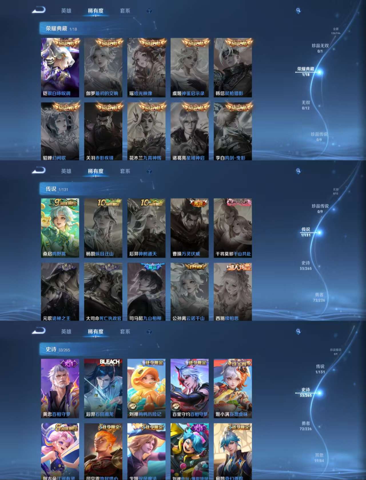 126皮肤1典藏1传说33史诗42限定 银白咏叹调